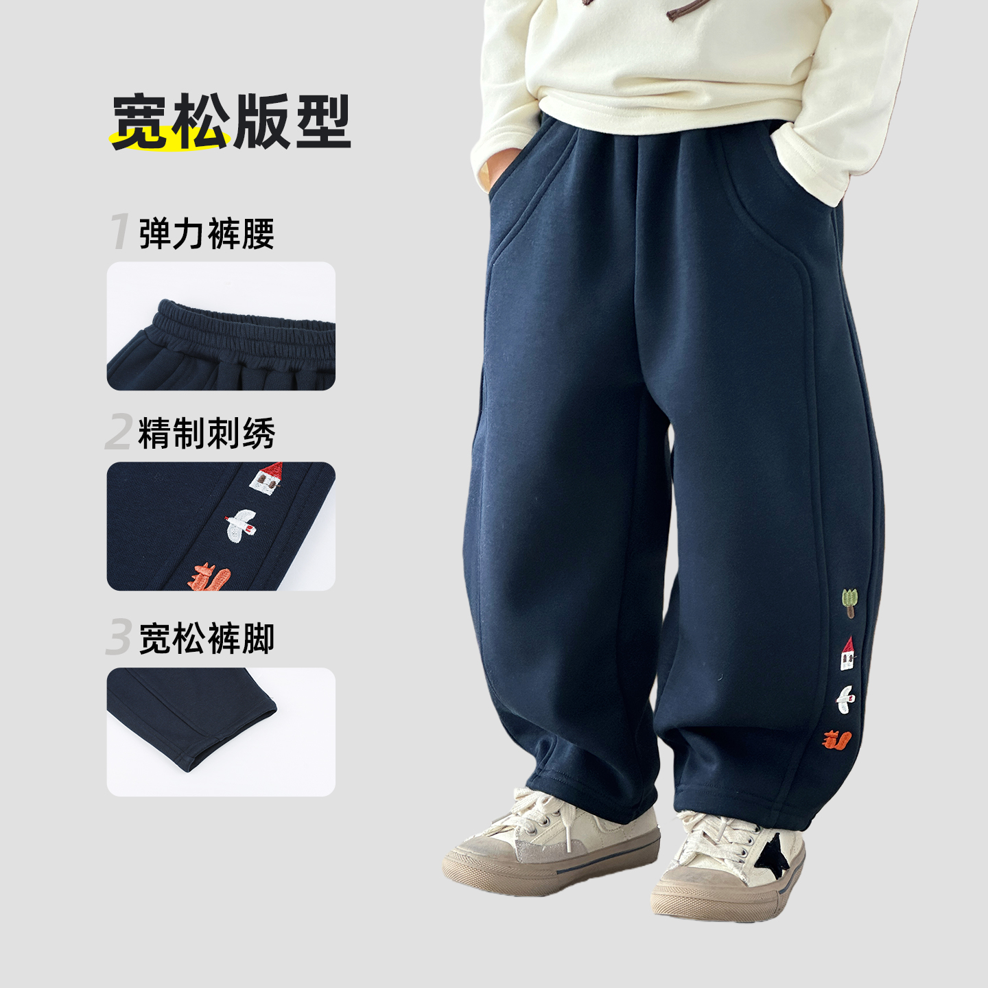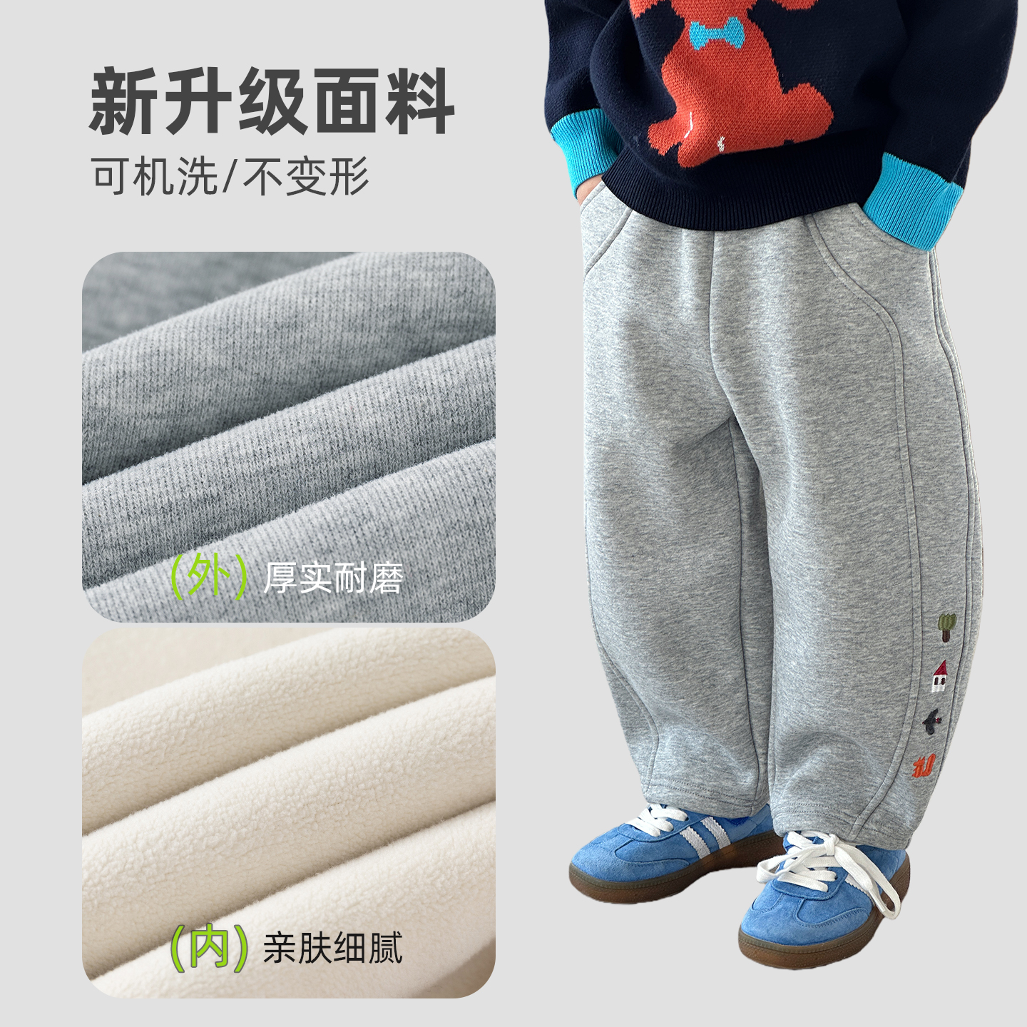 子秋冬款 男孩一体绒弯刀裤 儿童运动裤 加厚2025新款 冬季 男童加绒裤