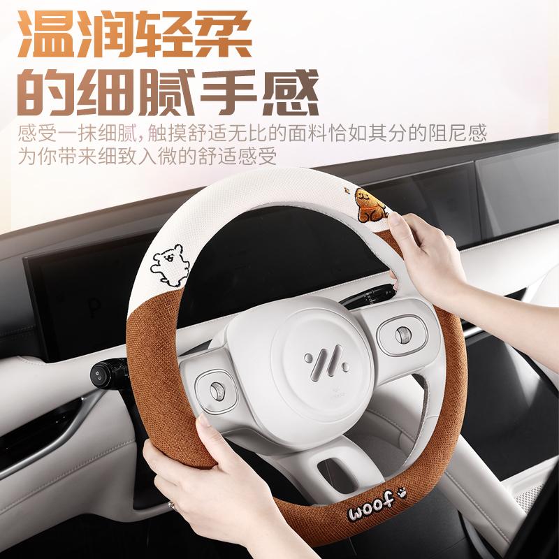 可爱汽车方向盘套四季 饰汽车把套 通用亚麻超薄卡通女生防滑车载装