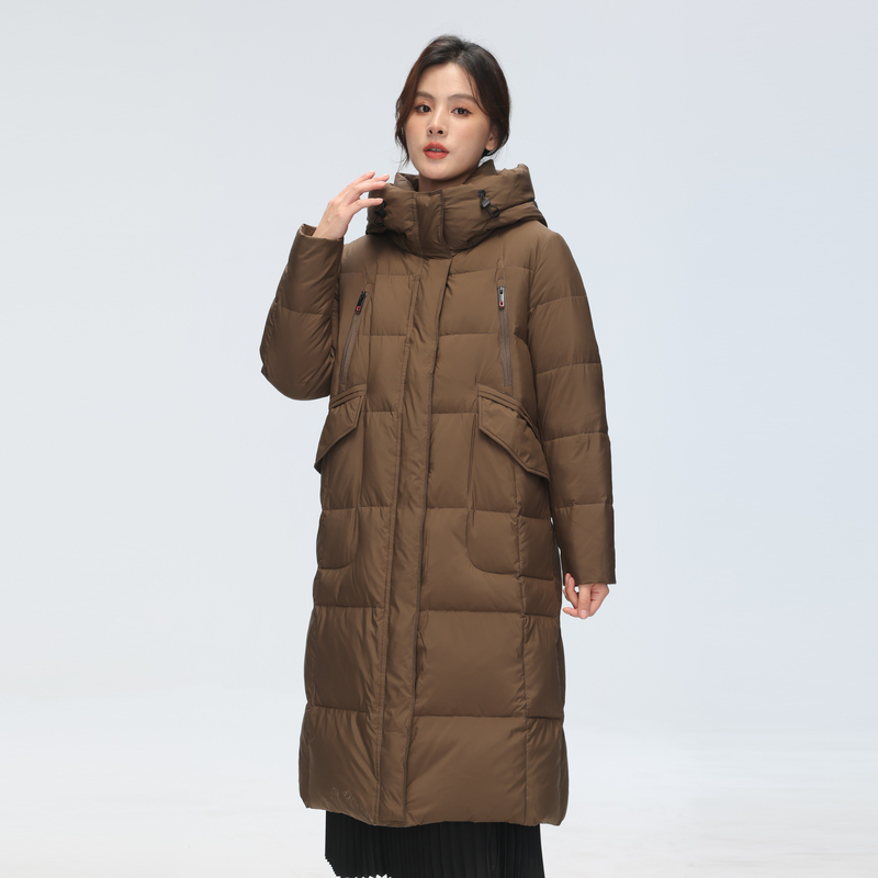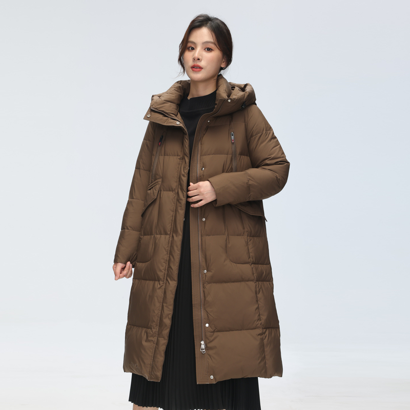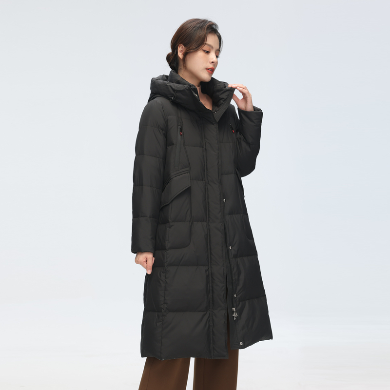 冬连帽羽绒服女修身 新款 波司登90鹅绒显瘦长款 保暖外套 爆款