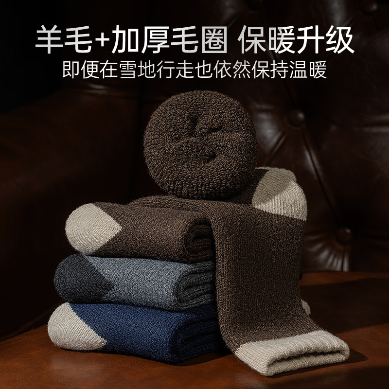 保暖羊毛袜子男士 加绒加厚中筒袜秋冬超厚撞色长筒毛圈毛巾底长袜
