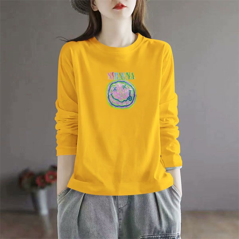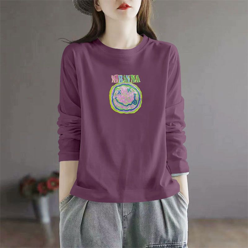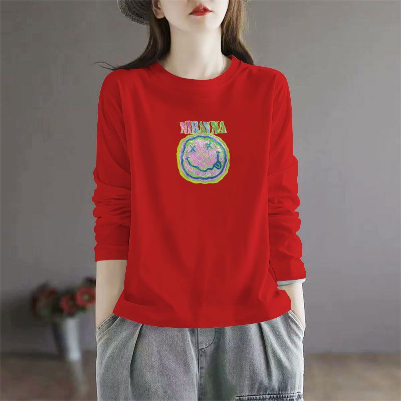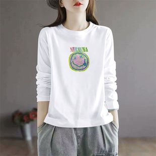 百搭宽松显瘦印花ins上衣 洋气韩版 春秋100%纯棉长袖 圆领T恤女时尚