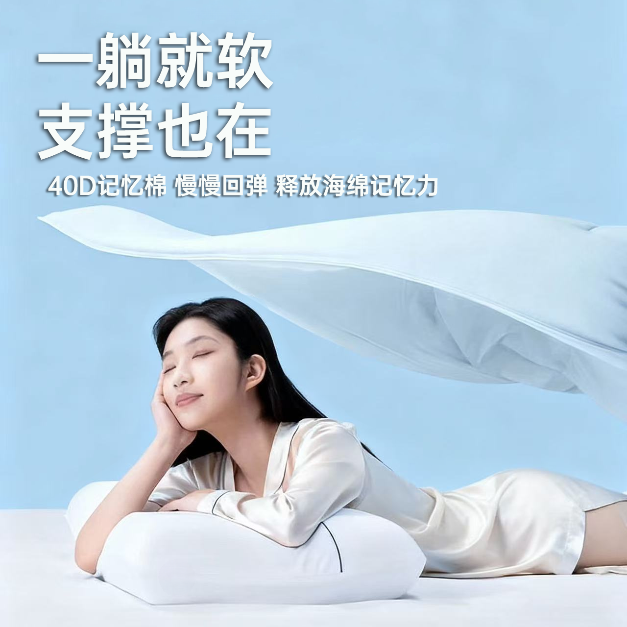 水星家纺记忆棉枕头芯慢回弹深睡枕A类抑菌成人学生宿舍呵护颈椎