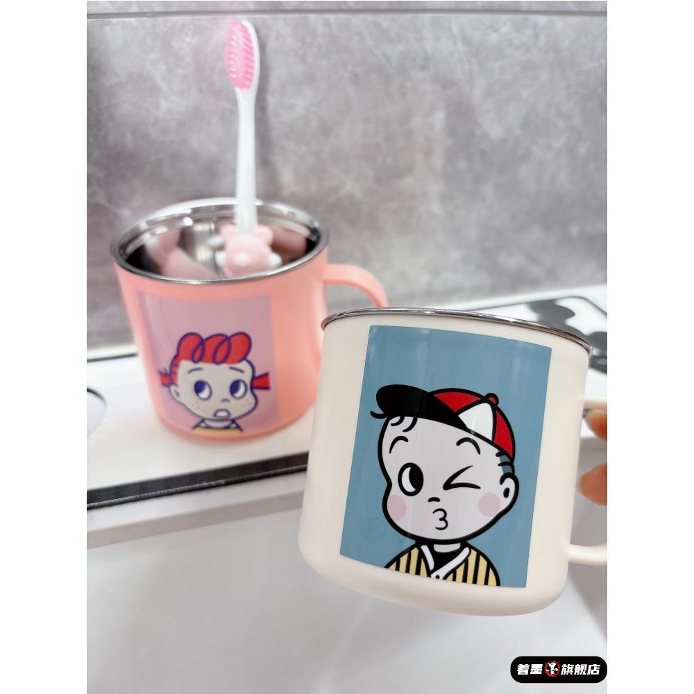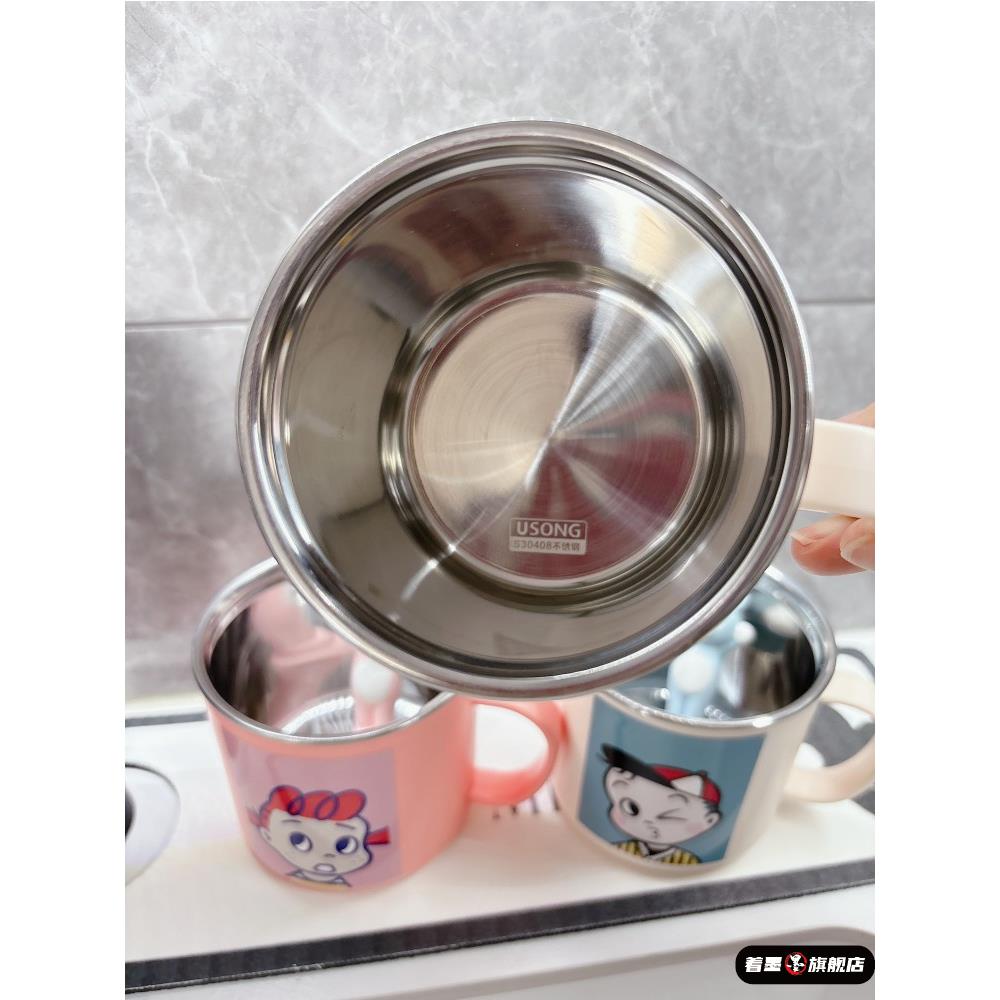 不锈钢漱口杯带手柄儿童刷牙杯洗漱家用牙缸牙具杯牙刷杯304男孩
