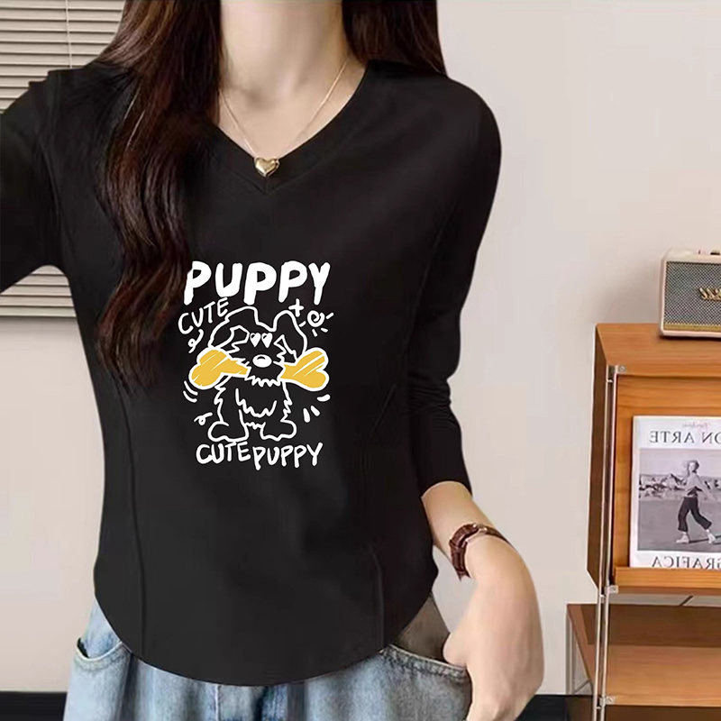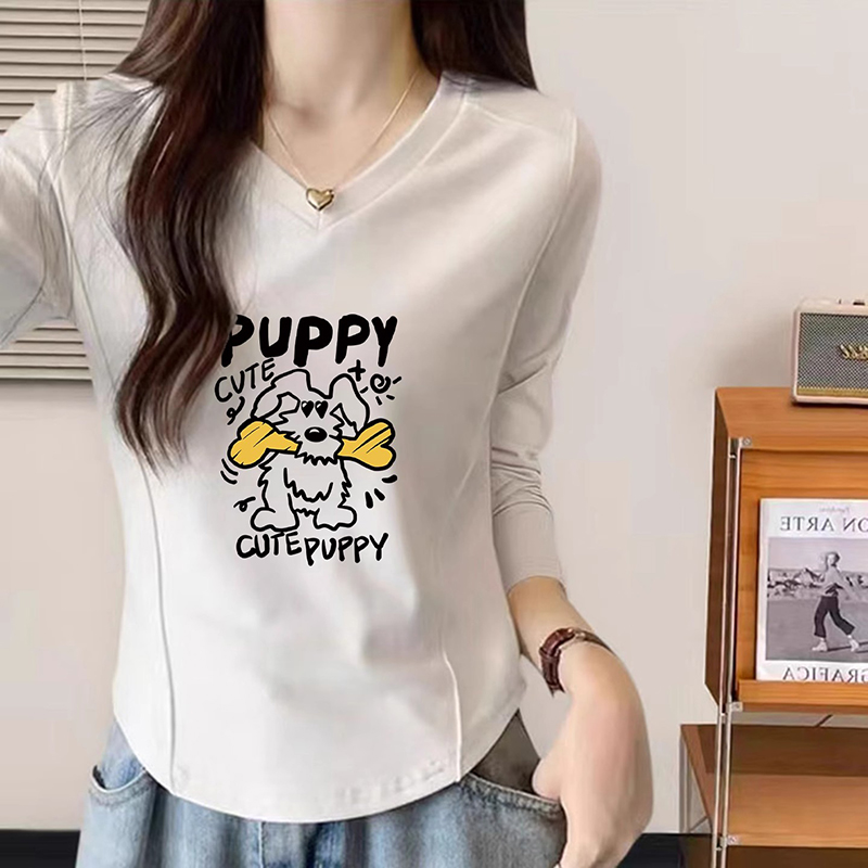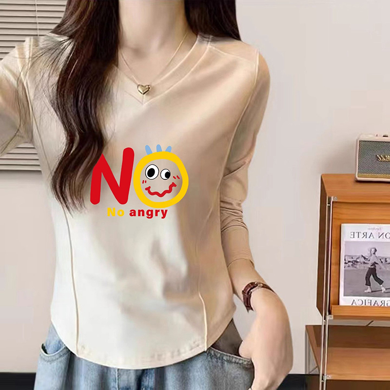 ins复古大码 新款 修身 t恤女秋季 胖mm印花百搭设计感上衣服 长袖 韩版