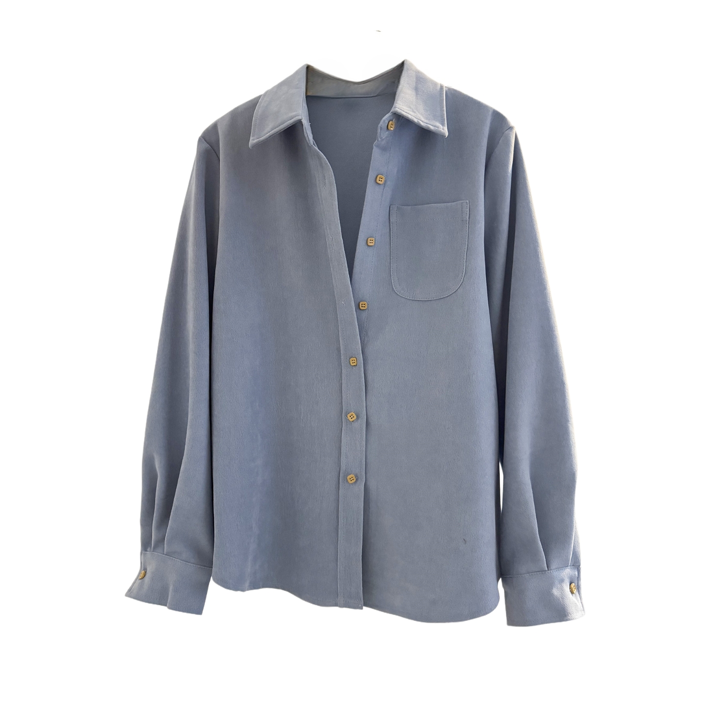 蓝色加厚叠穿磨毛衬衫 2025秋冬宽松休闲通勤衬衣单口袋上衣 女长袖