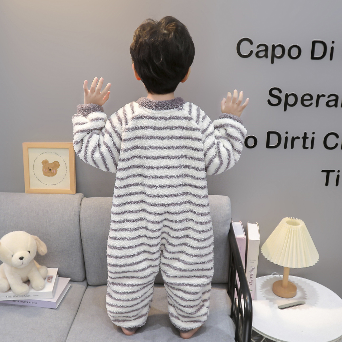 男童连体睡衣冬季 半边绒儿童防踢被保暖家居服宝宝卡通睡袋爬爬服