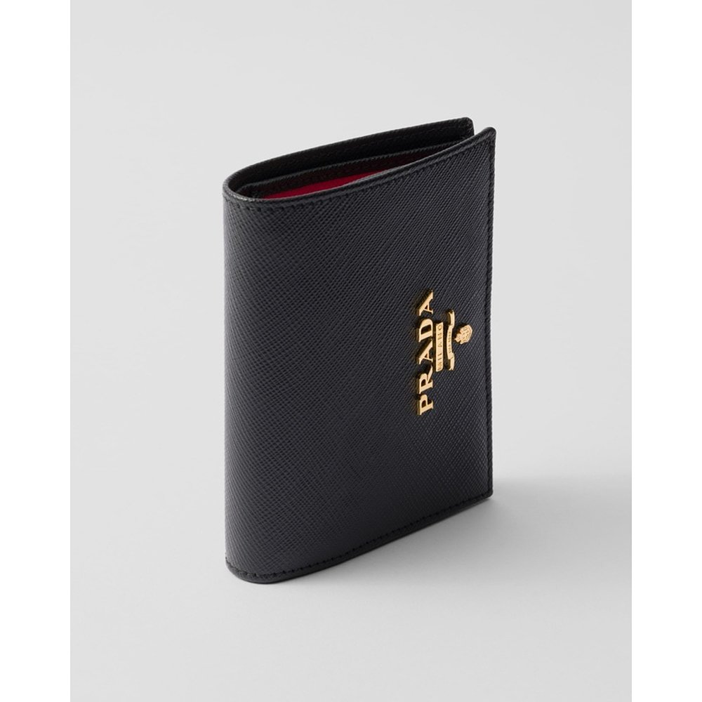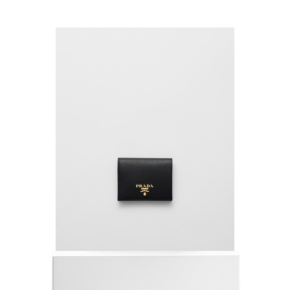 自营欧洲直邮Prada普拉达 木槿粉色小牛皮金属字母标识 女士黑色