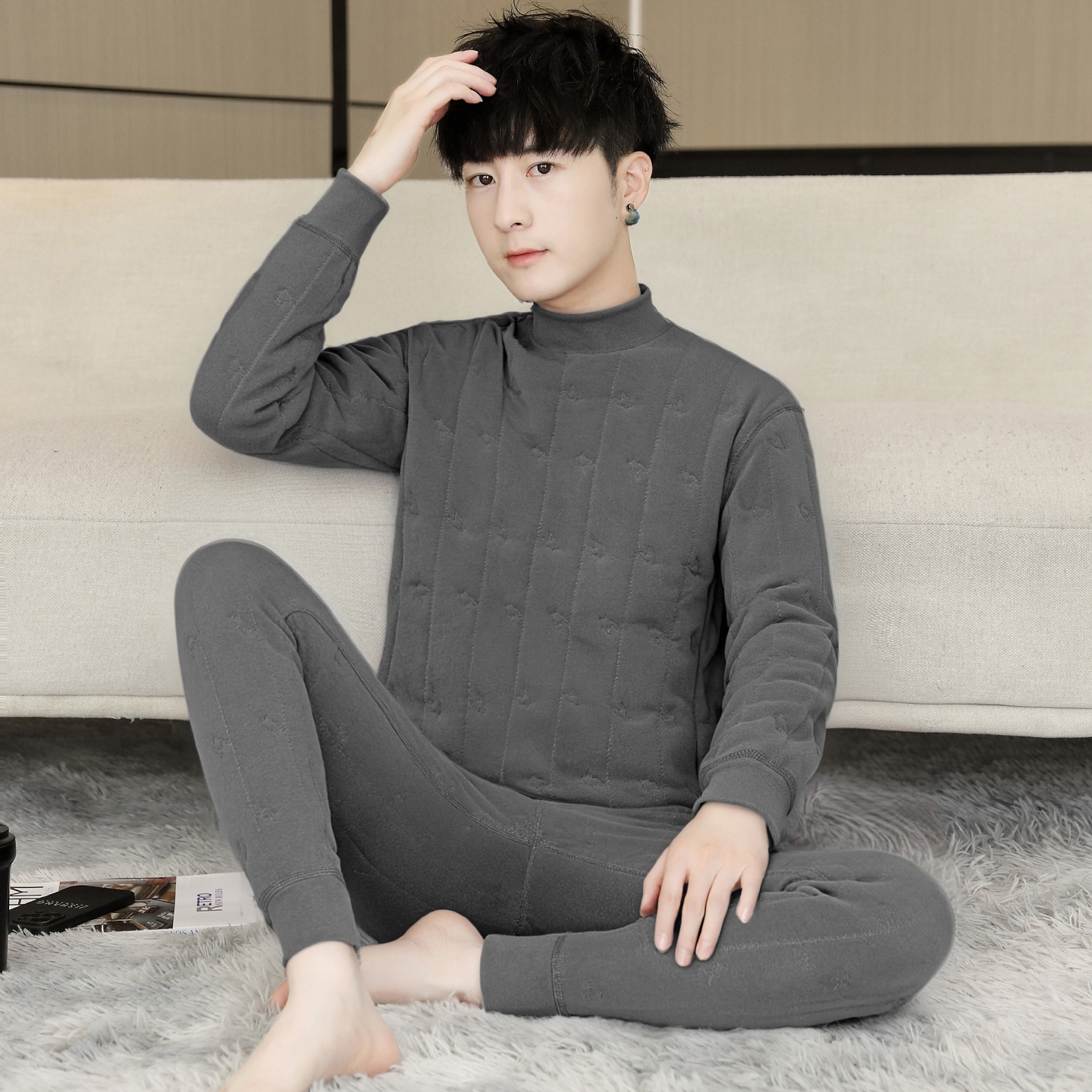 女圆领抗静电厚棉半高领秋冬 套装 三枪保暖内衣男士 纯棉秋衣秋裤