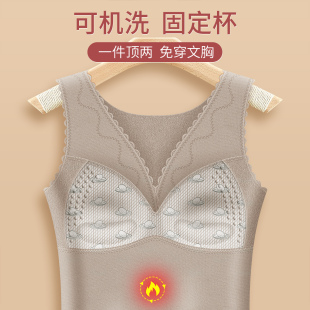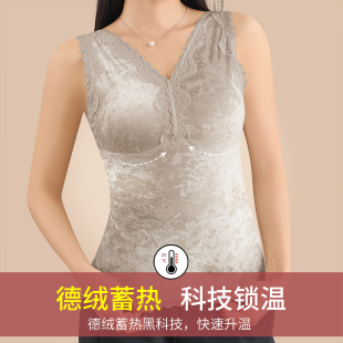 冬季 豹纹蚕丝德绒保暖背心女士加绒加厚无痕打底内衣女款 2025新款