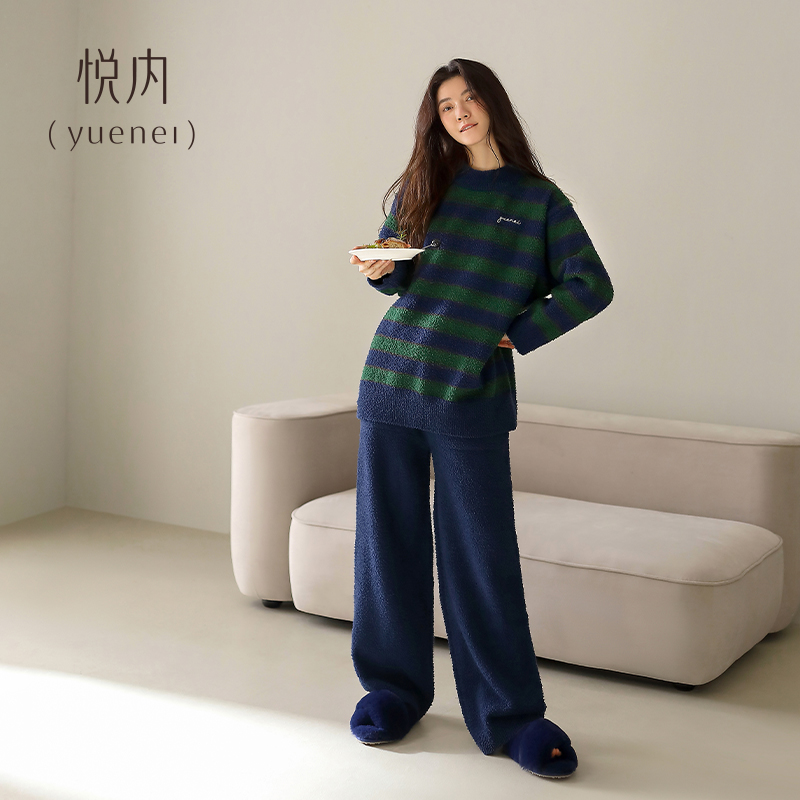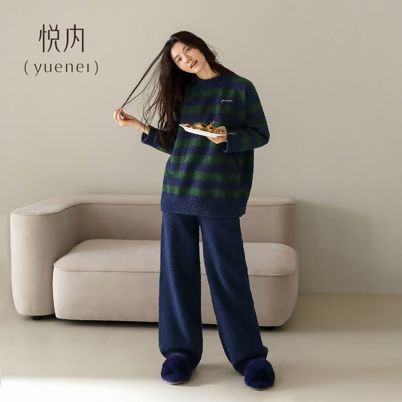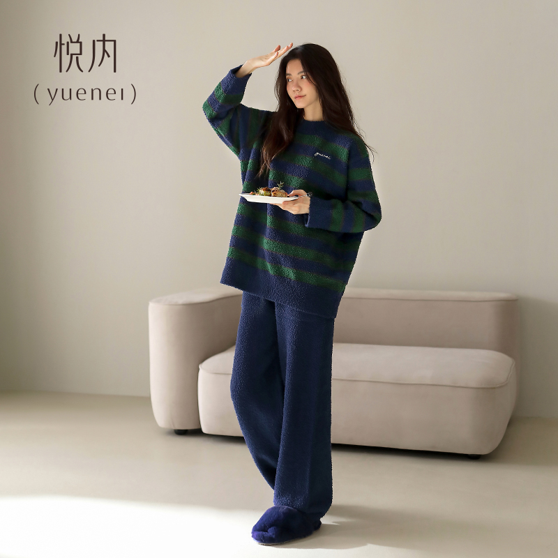毛绒软绵绵 冬天珊瑚绒保暖家居服秋冬时尚 悦内半边绒睡衣女款 冬季