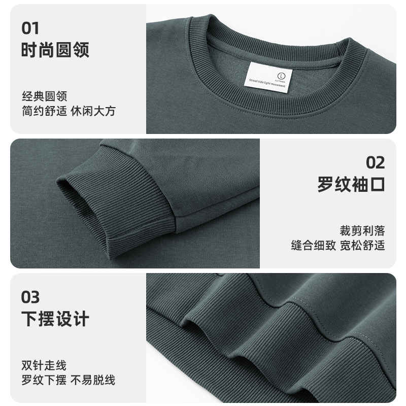 潮流宽松纯色无帽衫 320g重磅卫衣男士 t恤美式 加绒保暖长袖 秋冬款