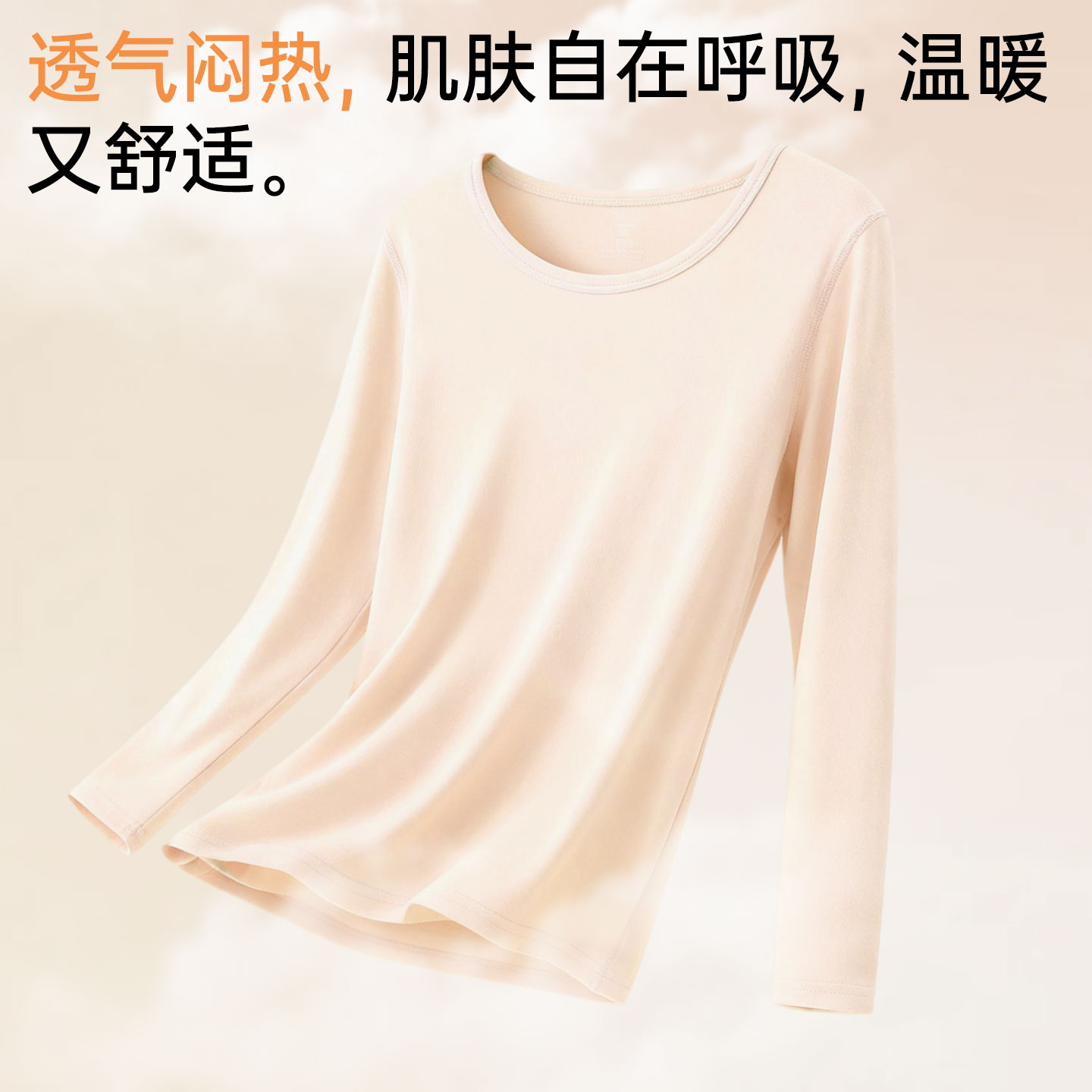 保暖内衣长袖 7A抑菌新款 外穿纯棉单件上衣圆领打底棉毛衫 秋衣女款