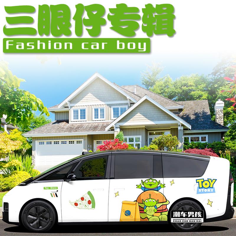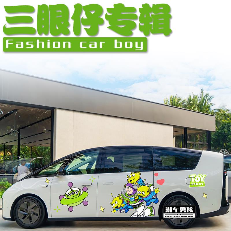 理想mega车贴 定制 玩具总动员三眼仔可爱卡通MPV车身两侧贴纸个性