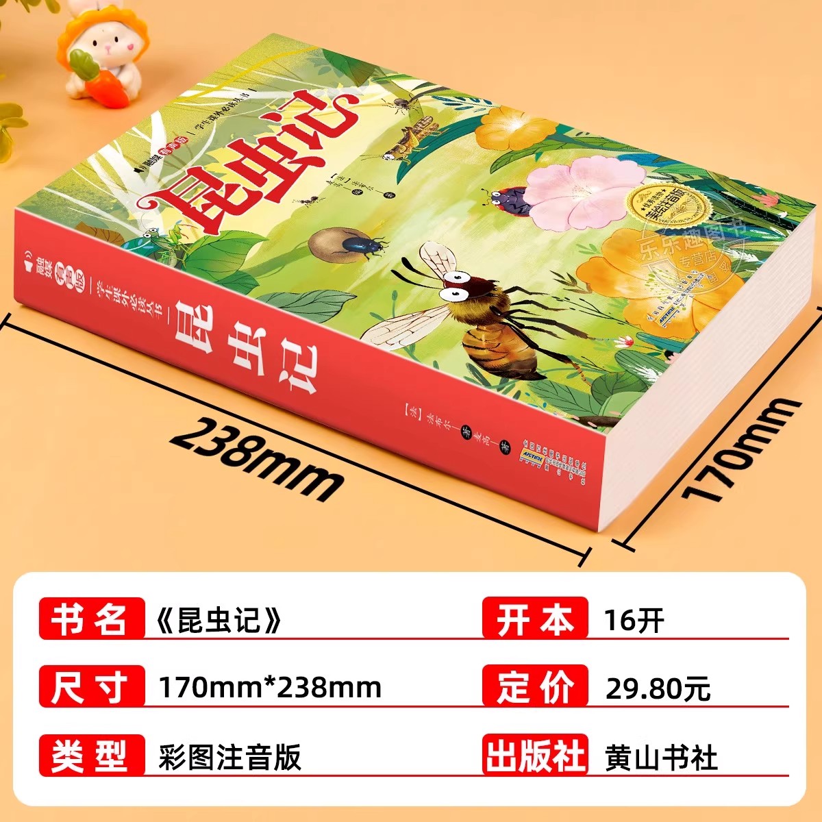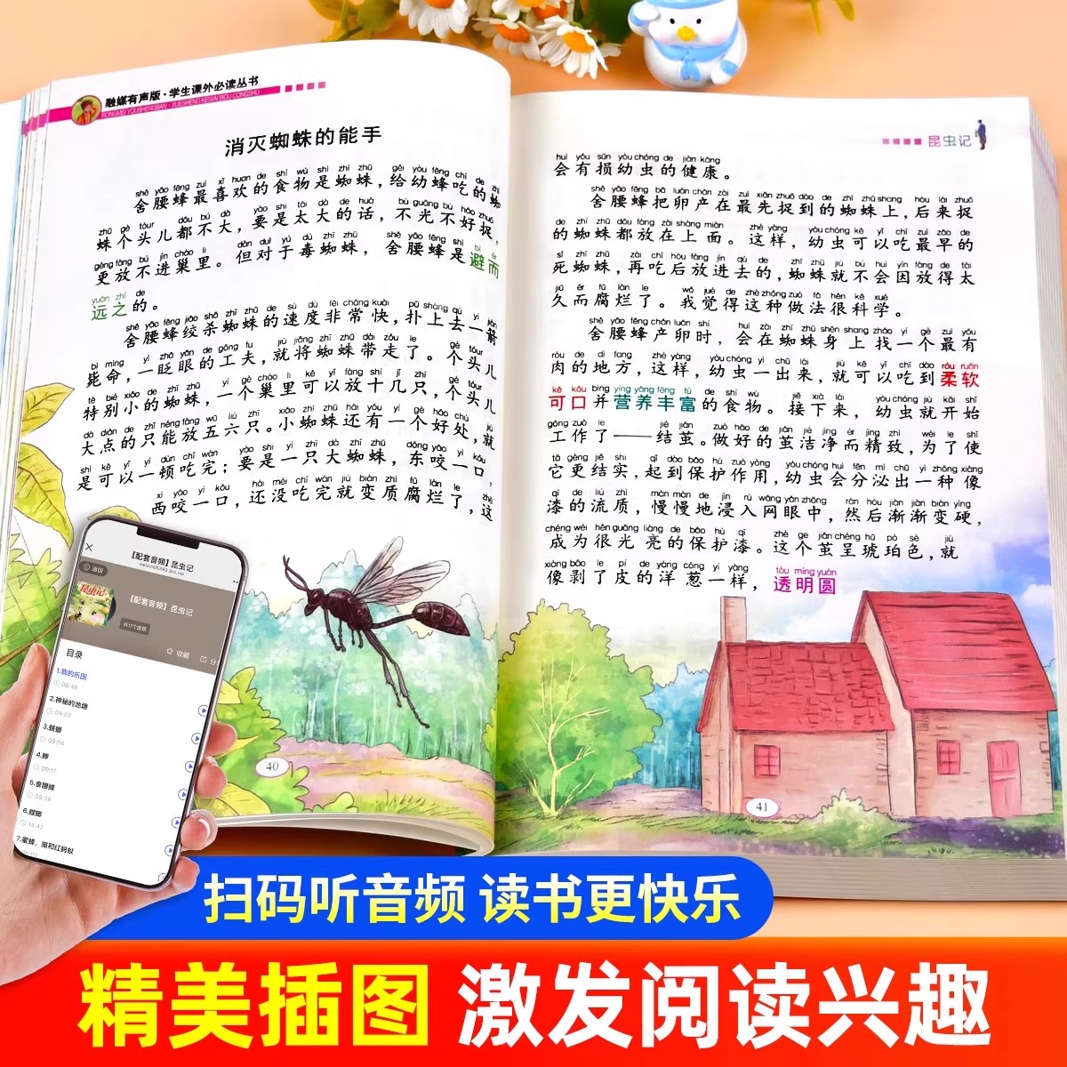 书目带拼音 法布尔昆虫记小学生彩图注音版 推荐 儿童科普读物故事大语文老师经典 上下册书籍12年级 一二年级阅读课外书必读正版