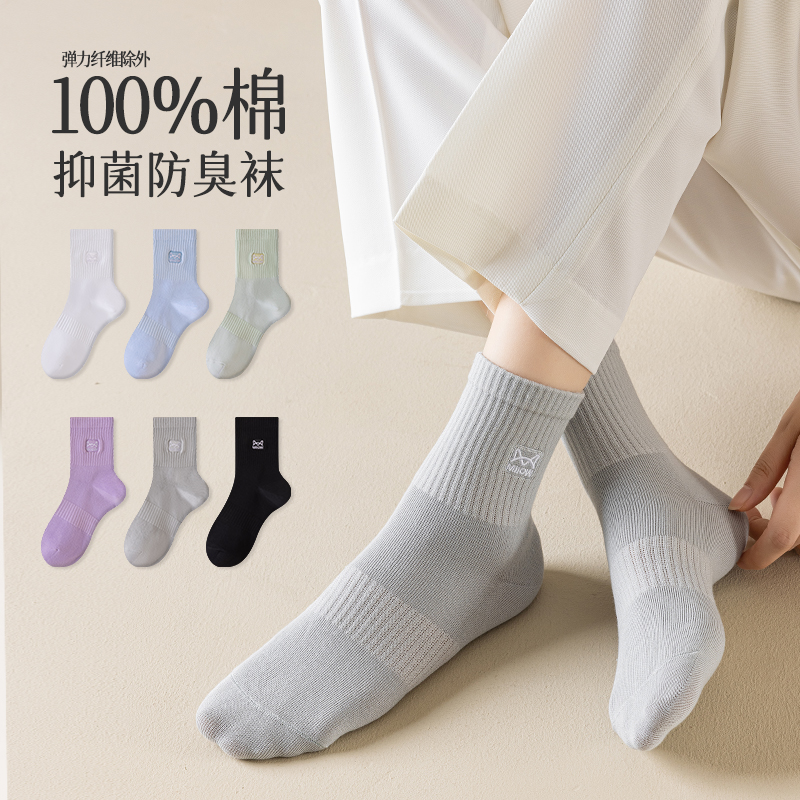 秋冬长筒袜女 爆款 猫人袜子女中筒袜秋季 白色防臭抗菌纯棉2025新款