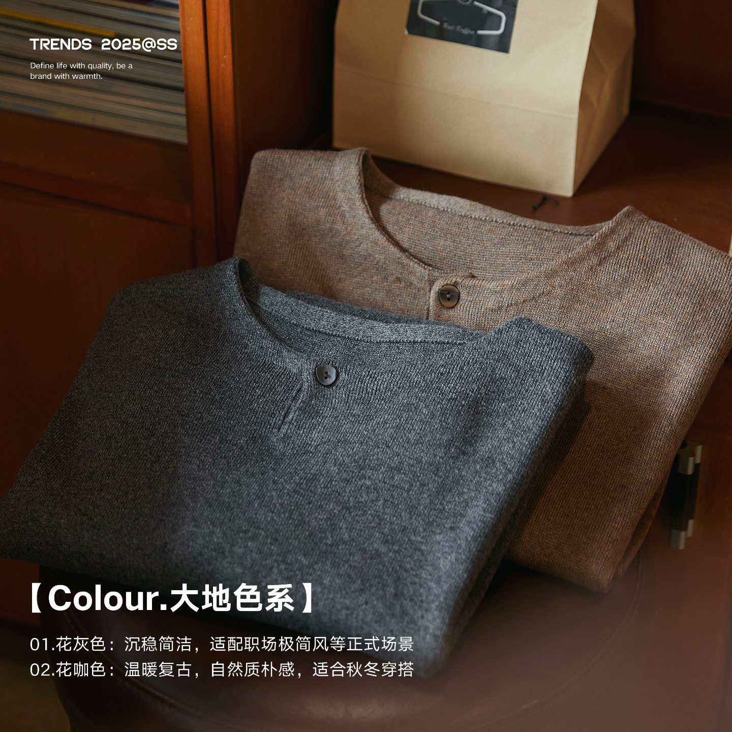 打底毛衫 2025新款 女冬亨利领含5.9%羊绒发热抗静电修身 森马针织衫