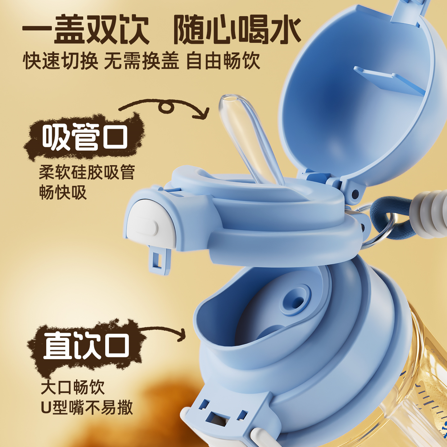 杯具熊儿童保温杯配件复古口袋款 吸嘴吸管 学饮直饮防呛硅胶原装