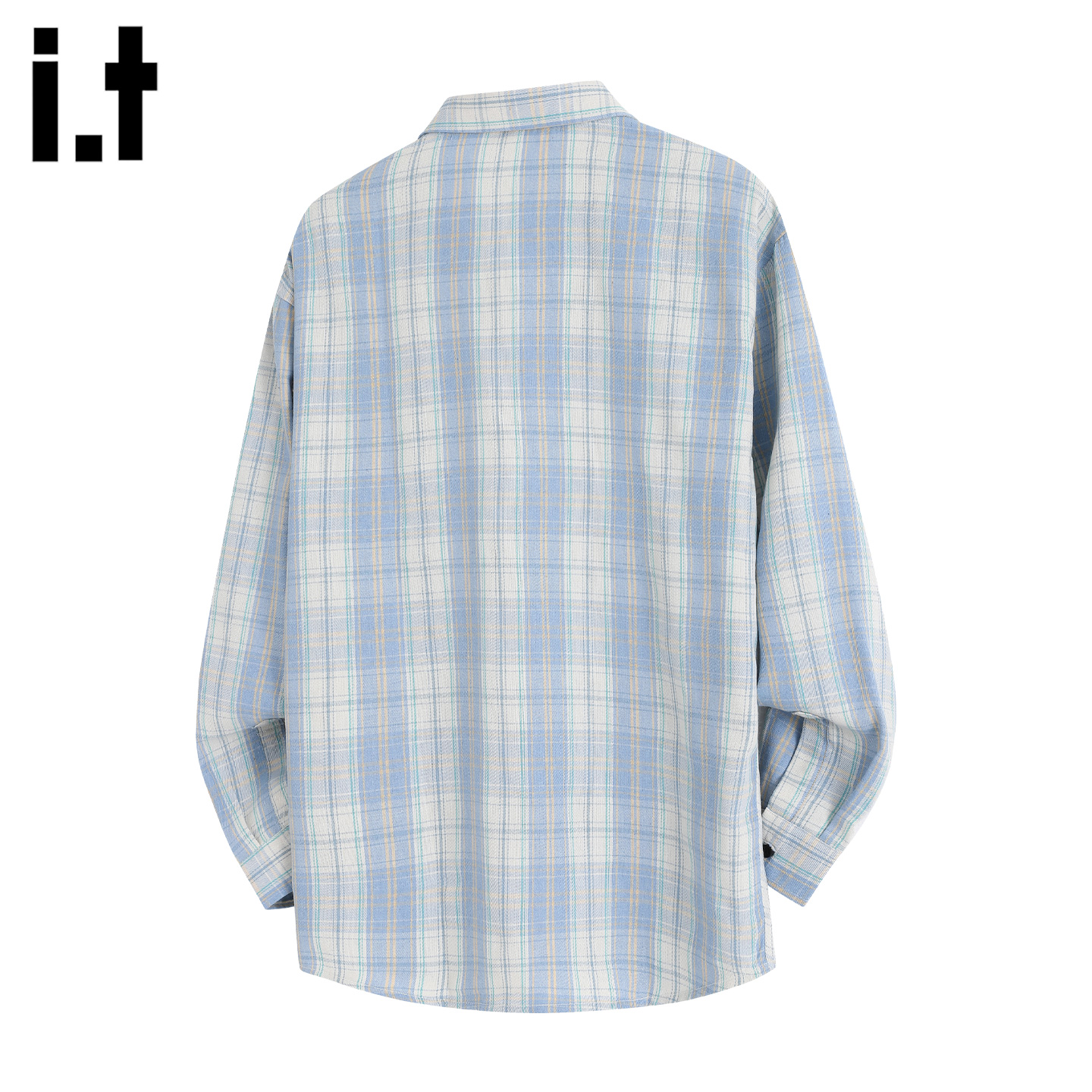 5cm 2025春秋季 FIVECM浅蓝格子条纹翻领长袖 男士 宽松上衣 衬衫
