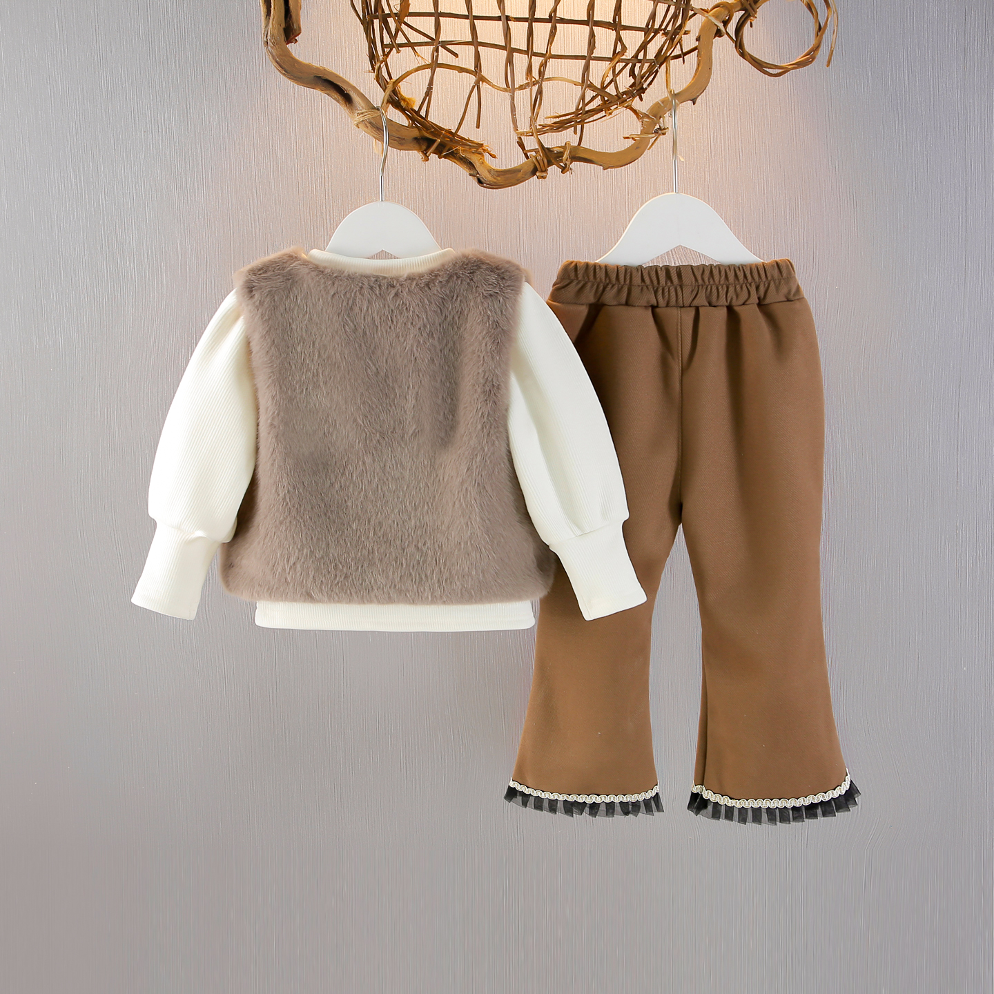 套装 叠穿内搭T恤木耳边牛仔阔腿裤 新款 蓝色镂空针织背心裙女秋季