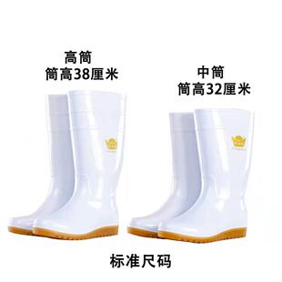 防滑食品水靴劳保雨靴胶鞋 平底雨鞋 白色中高筒牛筋耐磨耐酸碱水鞋