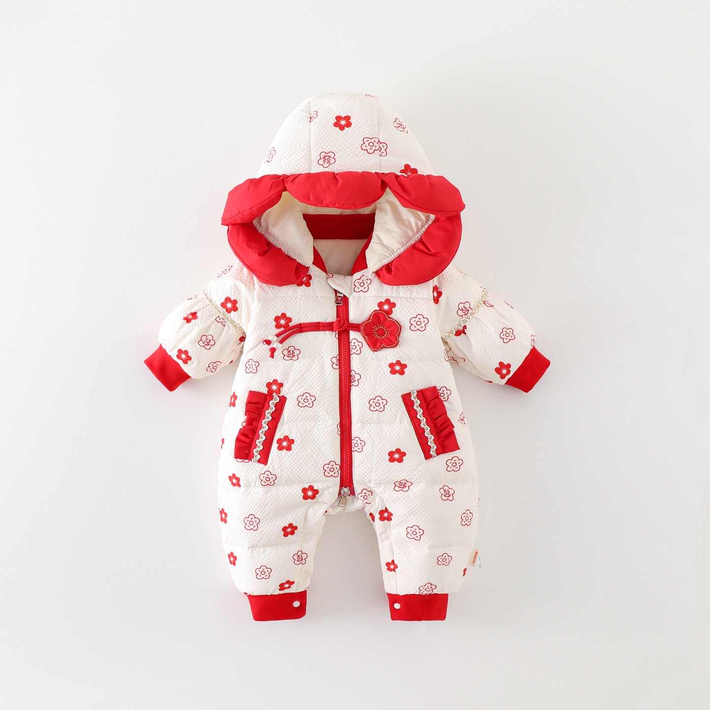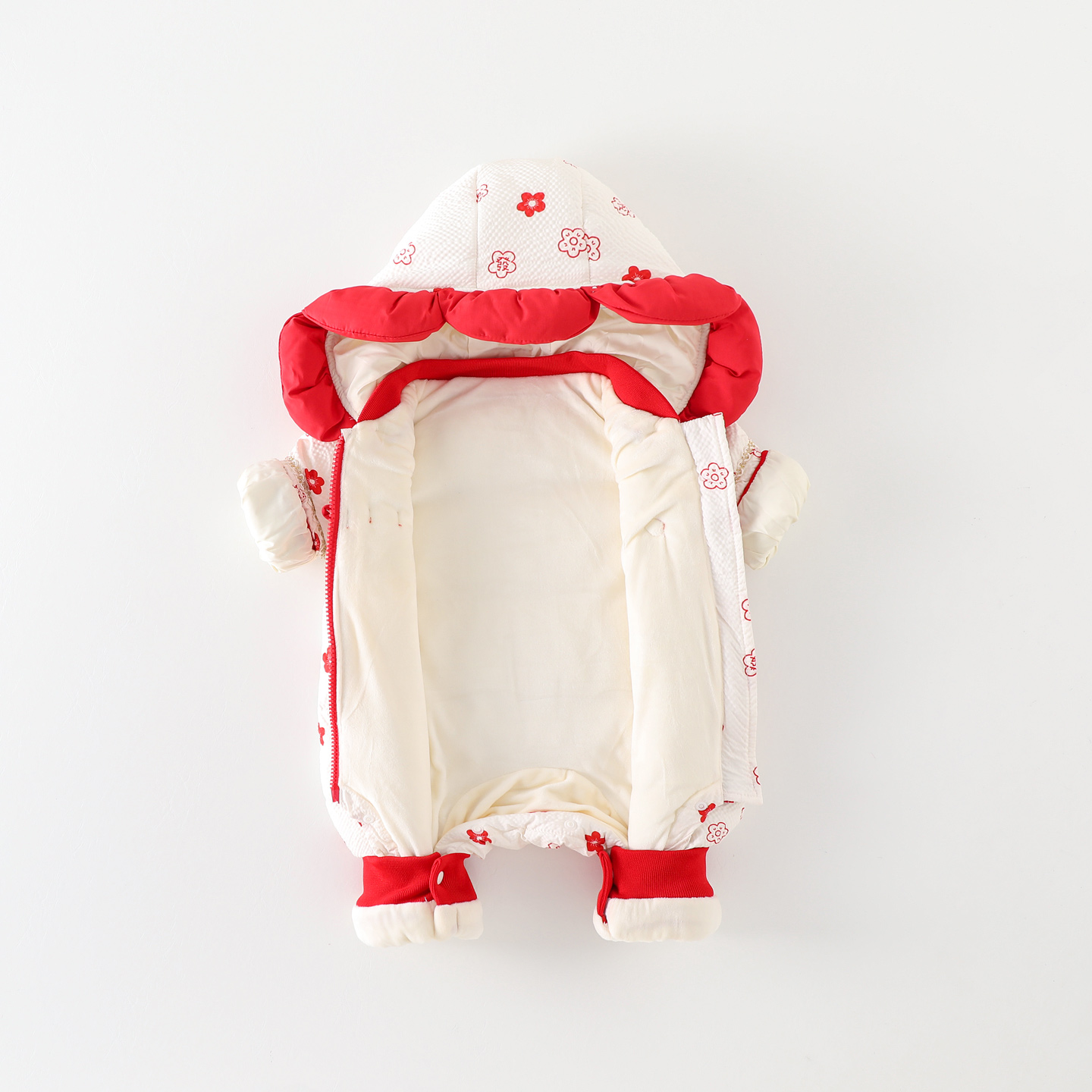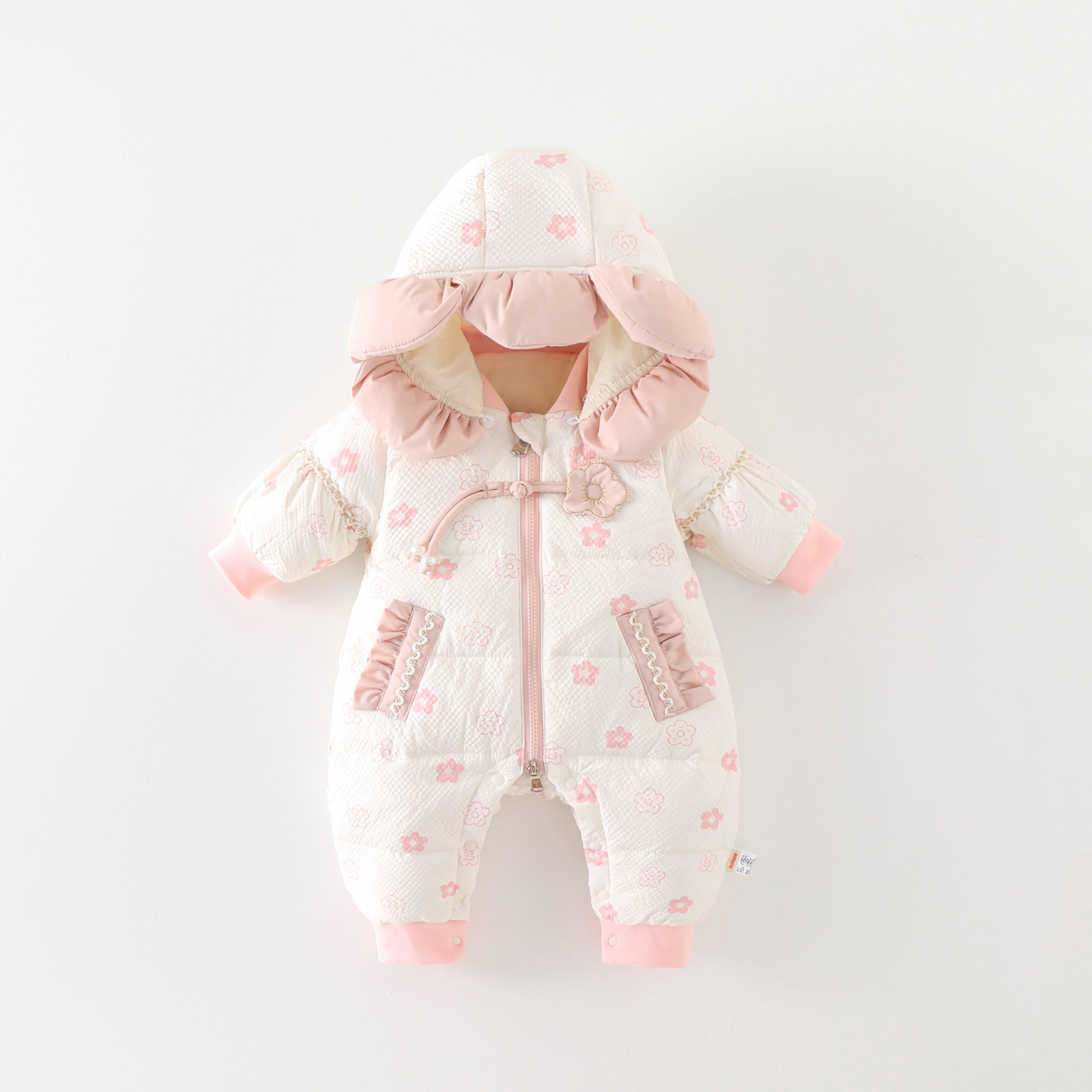 婴儿衣服冬季 满月百天外出抱衣 羽绒连体衣加绒加厚保暖女宝宝冬装