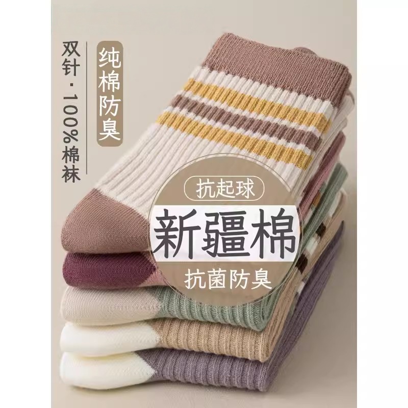 回力纯色新疆棉袜子男款 春秋吸汗防臭中筒袜冬加厚长筒袜100%正品