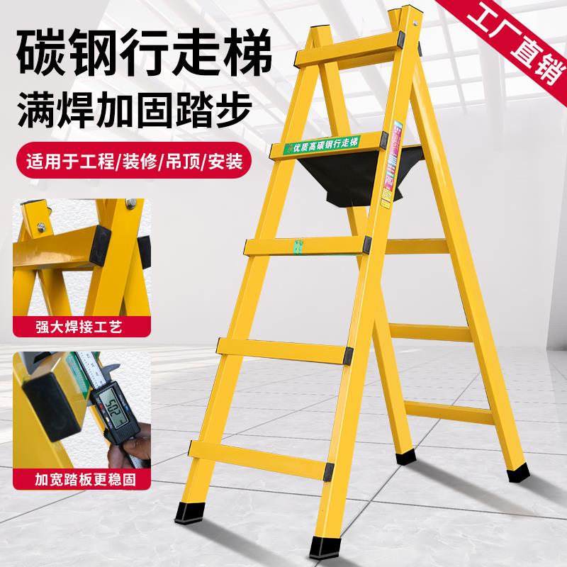 行走人字梯加厚碳钢走梯铝合金家用工程楼梯木工专用装 天 修悬吊式