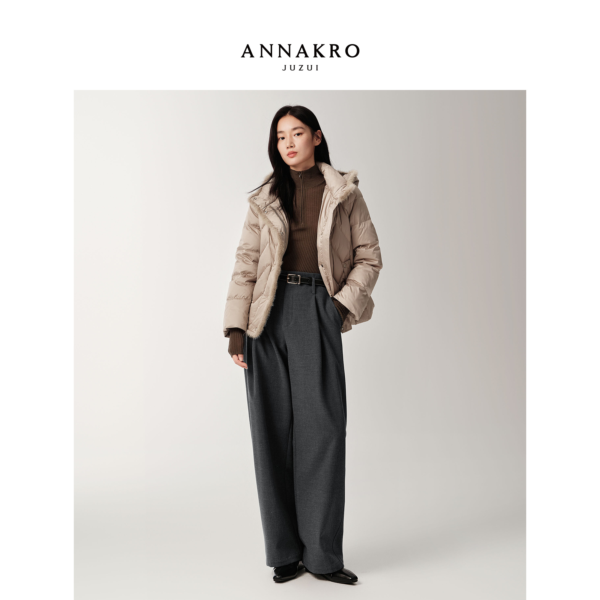雪中飞2025冬新款 翻领中长轻薄羽绒服巴恩风时髦温柔 女士针织中式