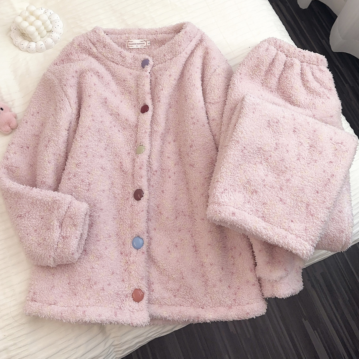 珊瑚绒睡衣女冬季 秋冬加厚加绒法兰绒高颜值家居服 甜美小香风套装