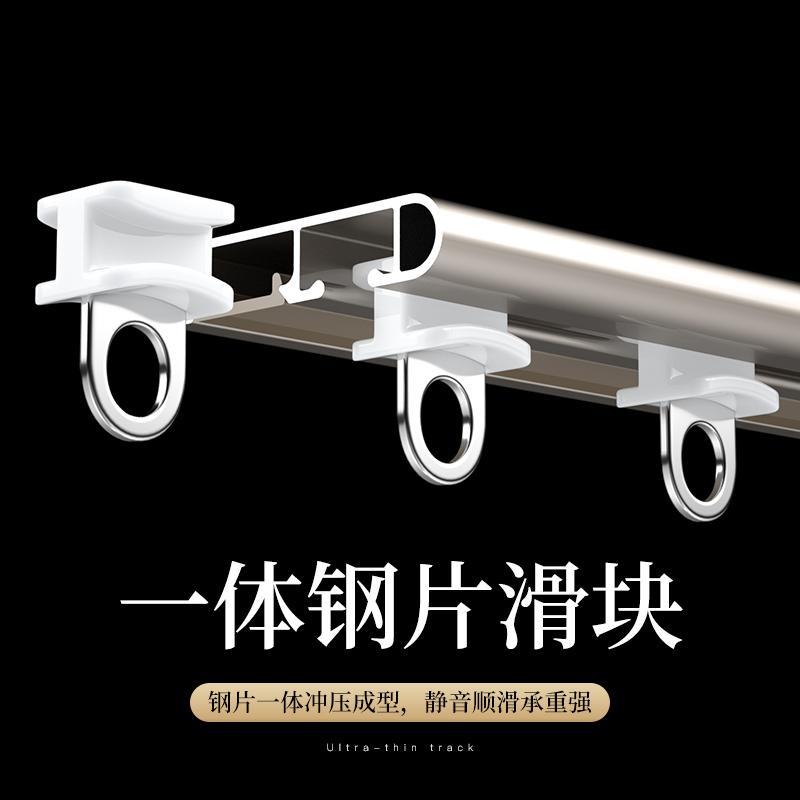 超薄内开窗窗帘轨道滑轨静音打孔U型L型弯轨直轨滑道顶装 导轨轨道