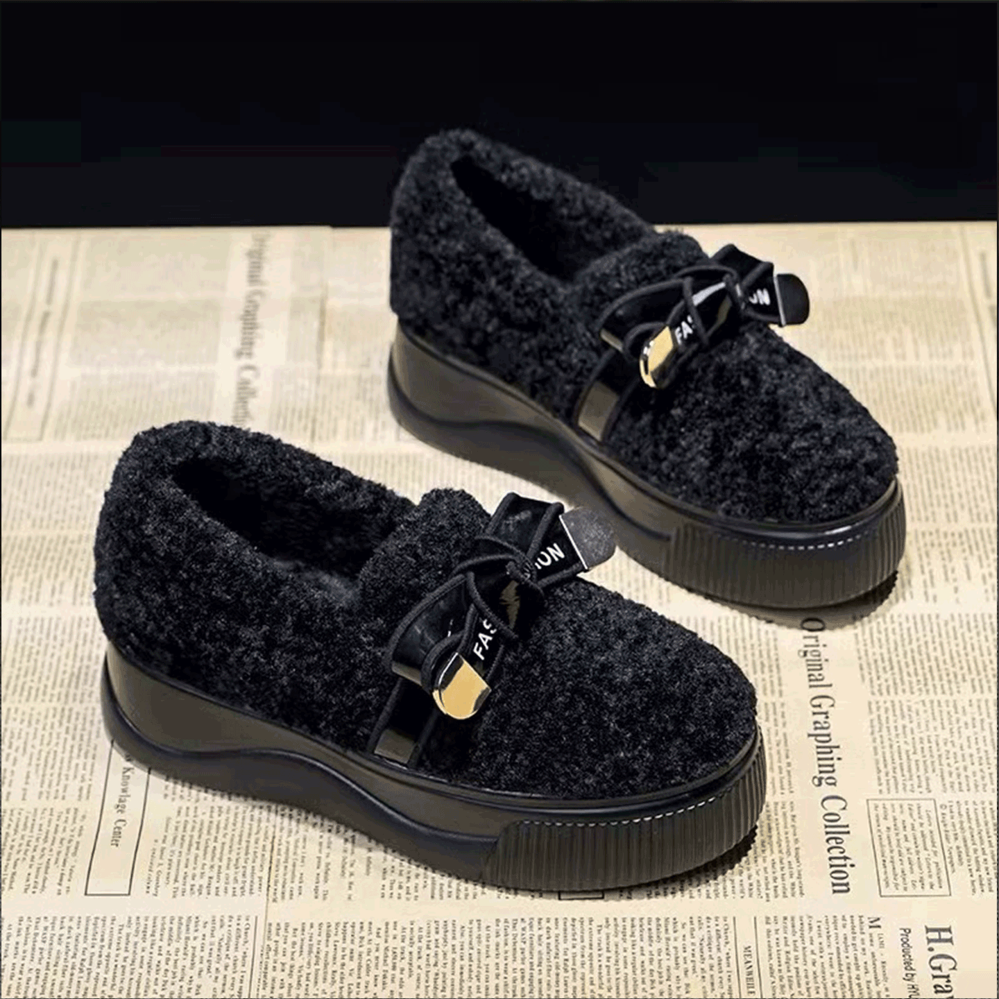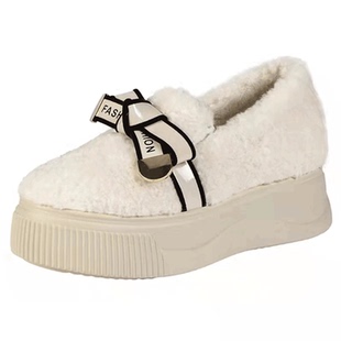 松糕厚底内增高软底轻便小个子豆豆鞋 毛毛鞋 女冬外穿加绒保暖棉鞋
