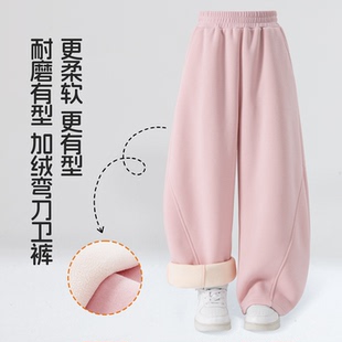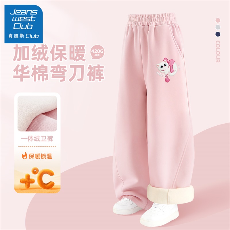 子女大童运动裤 儿童秋冬宽松裤 2025新款 真维斯club女童加绒弯刀裤
