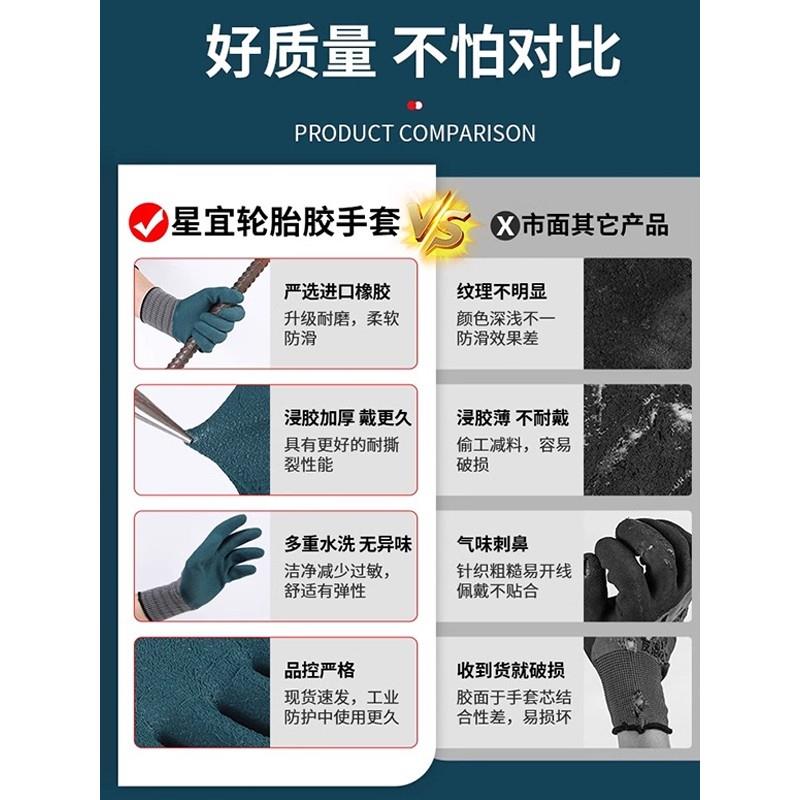 手套工作劳保耐磨防滑加厚劳动乳胶橡胶劳工防护干活工地浸胶防水