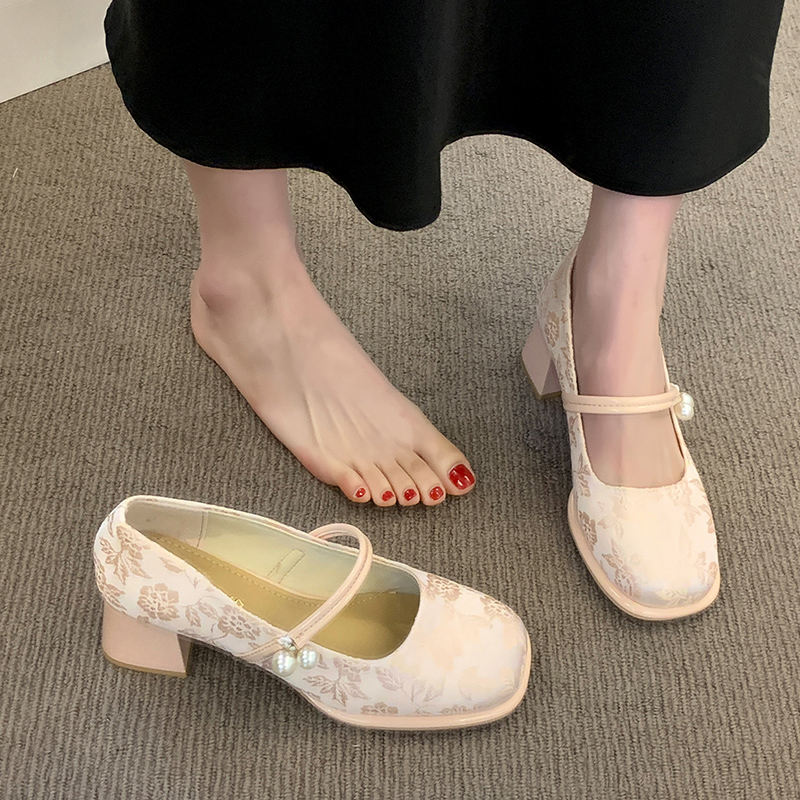 配旗袍裙子单鞋 新中式 2025年新款 女中粗跟春夏季 国风玛丽珍高跟鞋