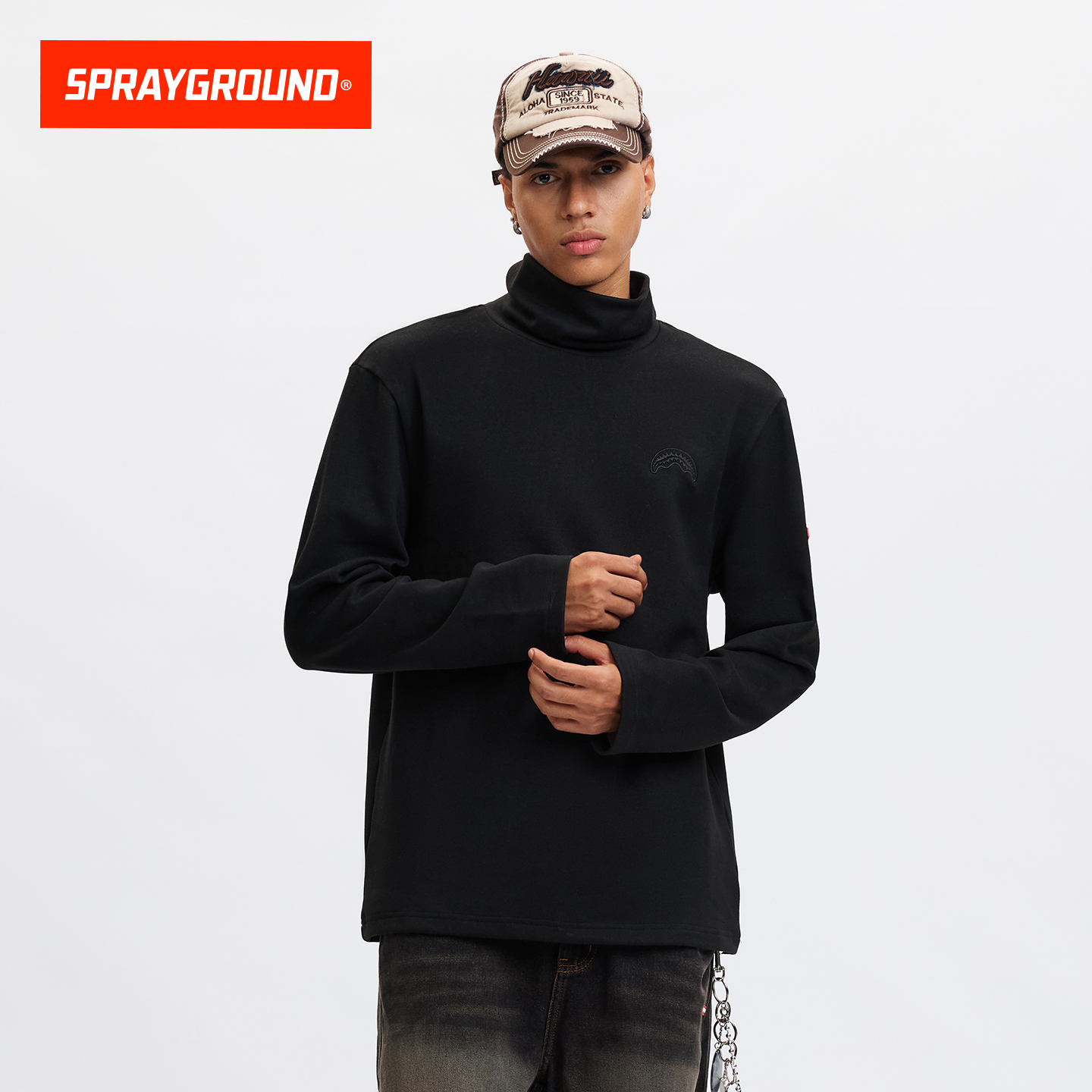 纯色宽松上衣 内搭打底衫 SprayGround鲨鱼嘴高领长袖 T恤男2025秋季