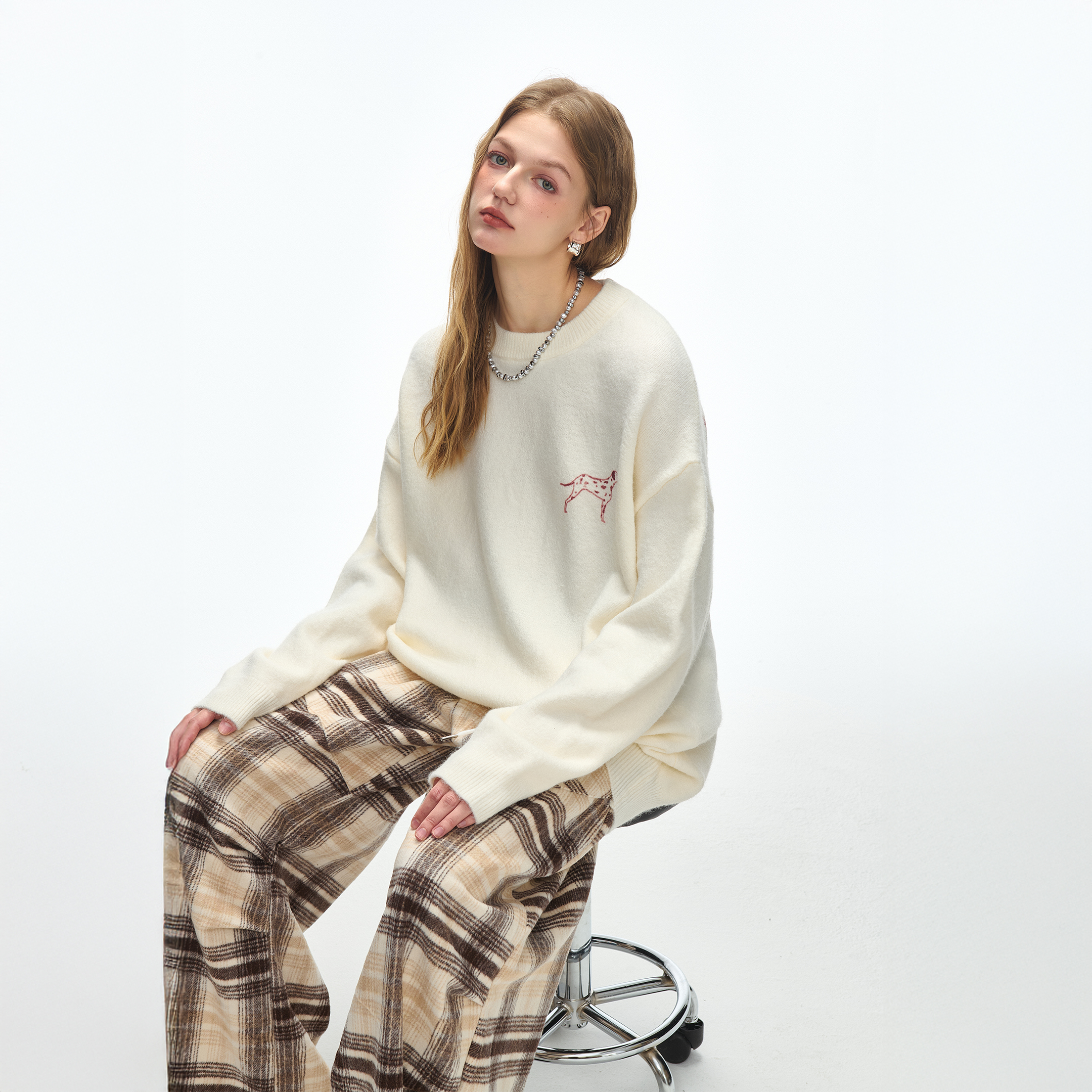 唐狮2025秋冬毛衣慵懒风针织开衫 外套女撞色爱心复古毛衣外套