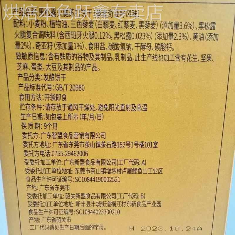山姆代购 黑松露火腿苏打饼干下午茶早餐藜麦奇亚籽饼乾官方旗舰店