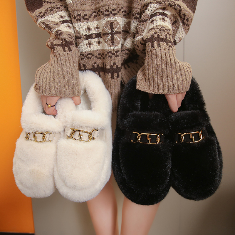 外穿平底复古软底勃肯大头一脚蹬棉鞋 秋冬季 女加绒乐福鞋 豆豆鞋 款