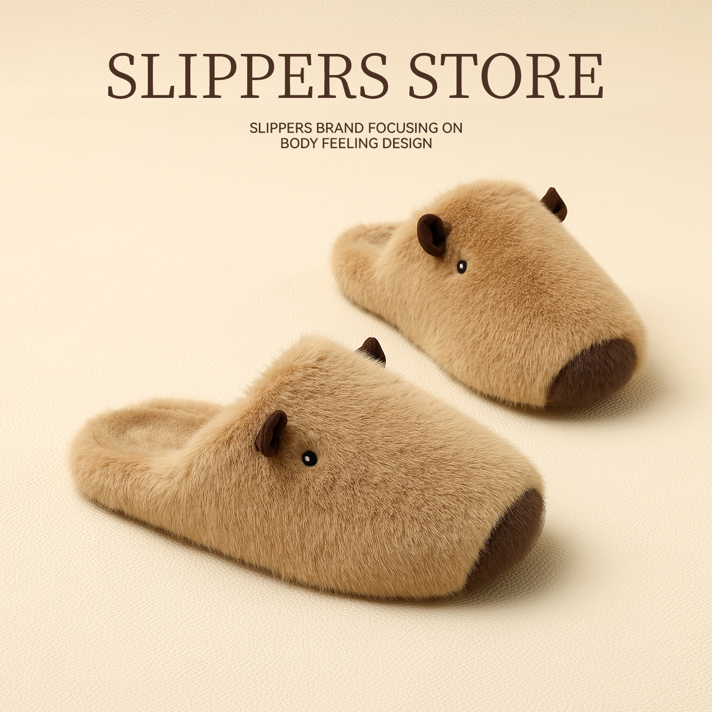 2025新款 秋冬季 室内保暖居家情侣毛毛棉拖 女款 卡皮巴拉毛绒棉拖鞋