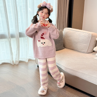 加大码 套装 家居服春秋 秋冬季 芬腾女士睡衣空气棉夹层纯棉加厚长袖