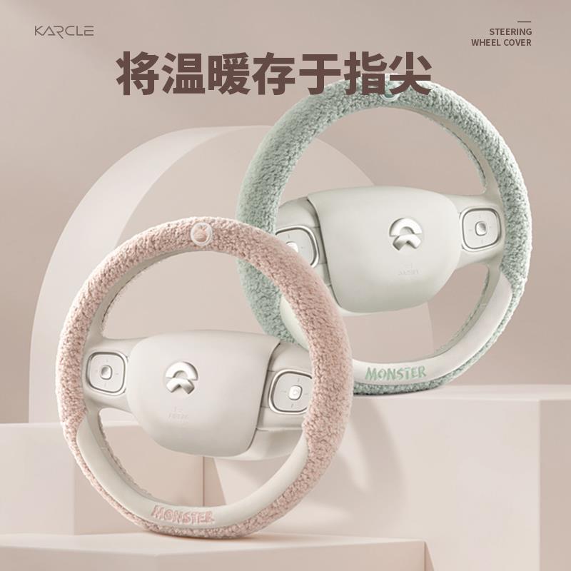 防滑保暖泰迪绒短绒车把套卡通 毛绒可爱女款 汽车方向盘套冬季