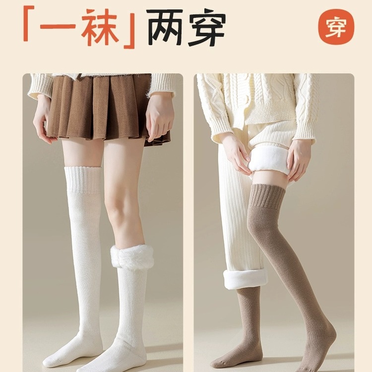 长筒靴袜子女搭配靴子小腿堆堆过膝袜春秋内搭白色大腿长筒袜羊毛