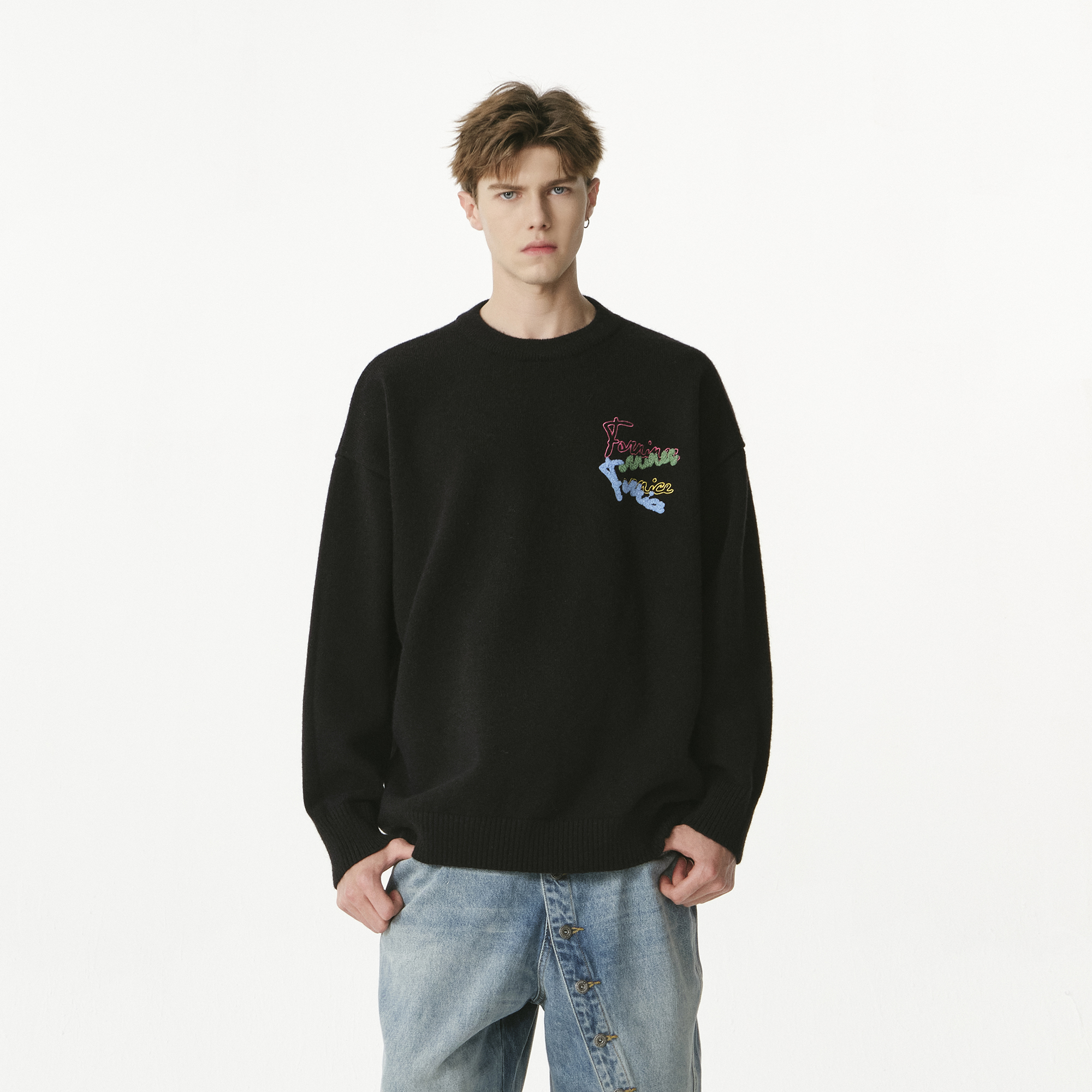 FORNINES彩色刺绣毛衣男秋冬新款 女 慵懒高级感套头情侣休闲针织衫