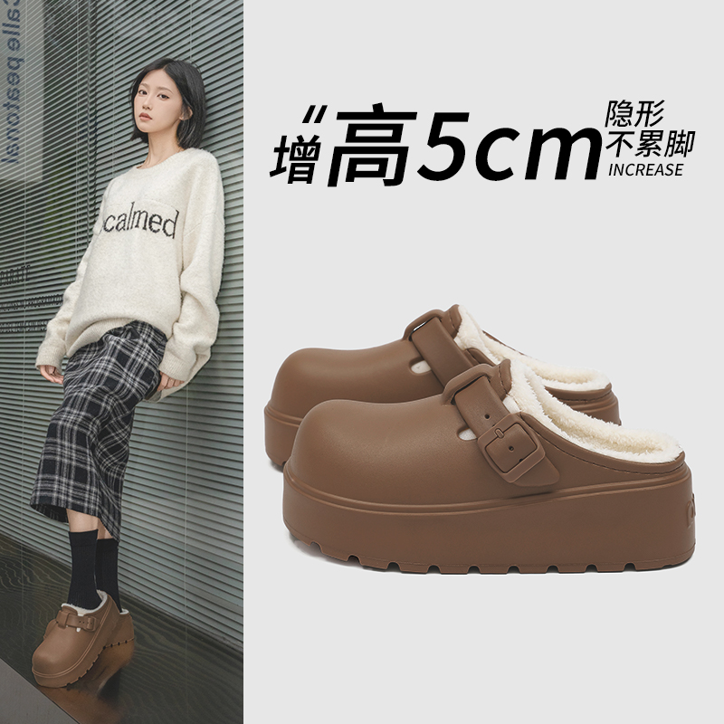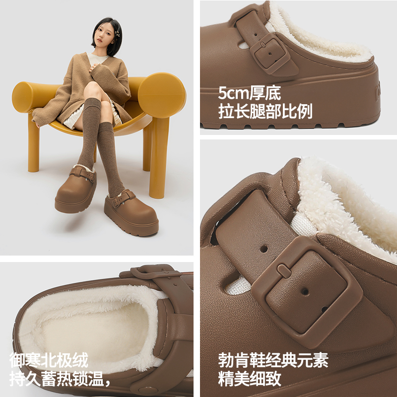 防水棉拖鞋 朴西勃肯鞋 外穿防滑居家室内保暖厚底增高新款 冬季 女款
