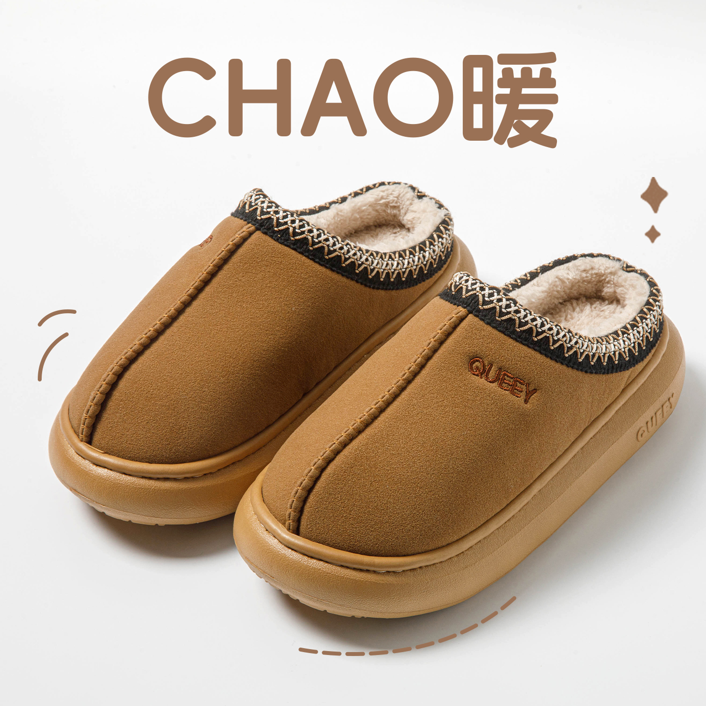 室内家居毛绒踩屎感保暖舒适棉拖男 2025新款 防滑厚底棉拖鞋 女冬季