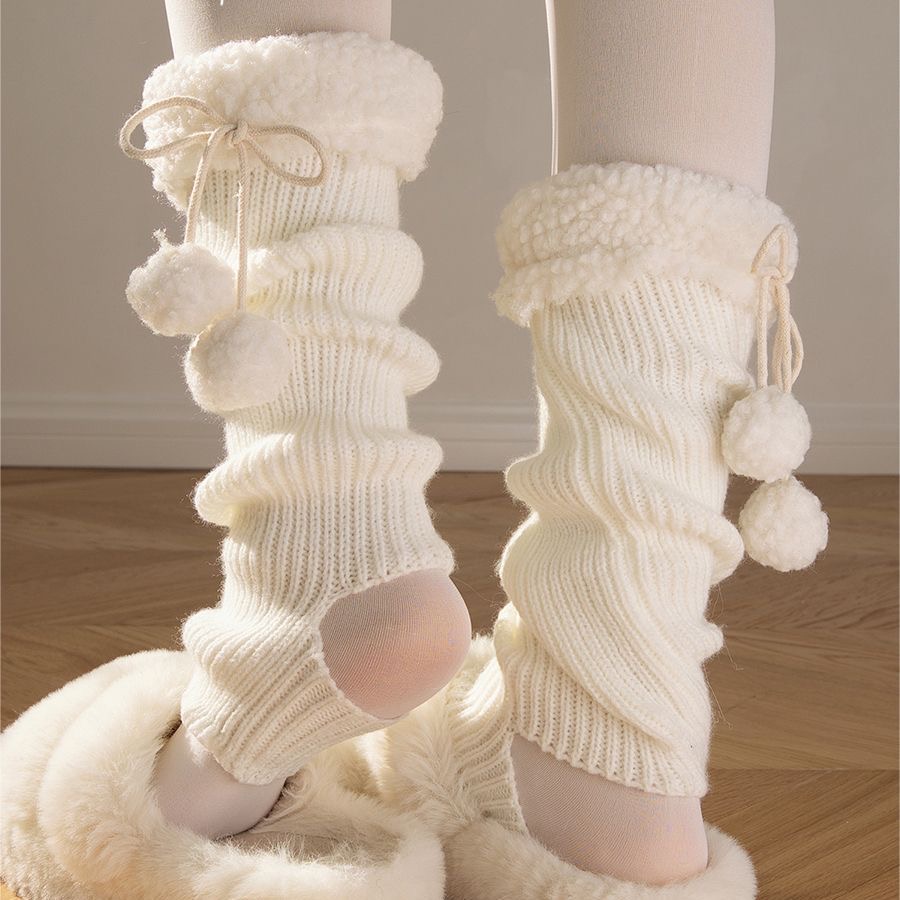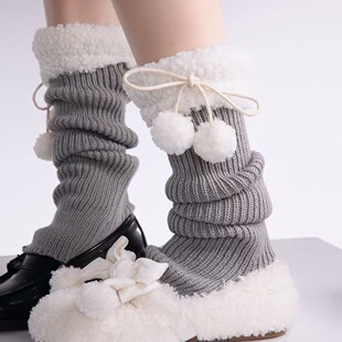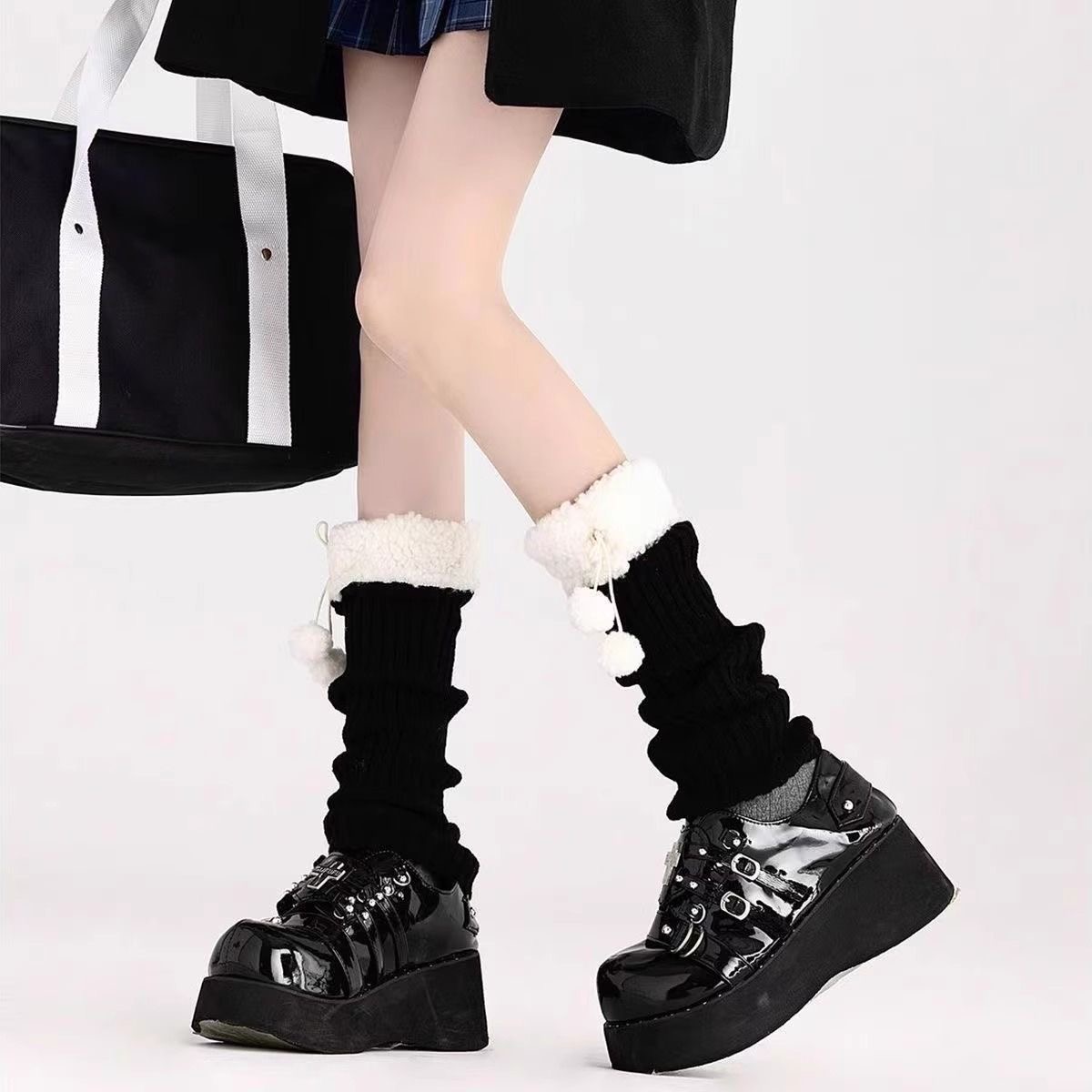 羊羔毛针织袜套秋冬加厚踩脚lolita可爱毛绒腿套日系花边中筒袜套