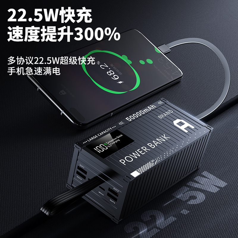 充电宝双向2025新款 箱移动电站移动电源 超级快充自带线超大容量50000毫安户外集装