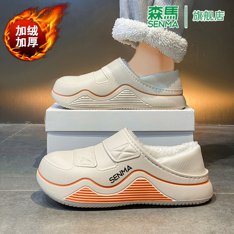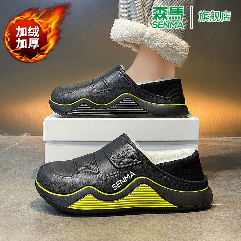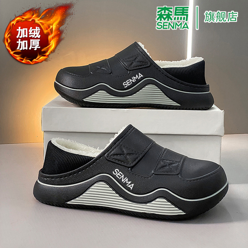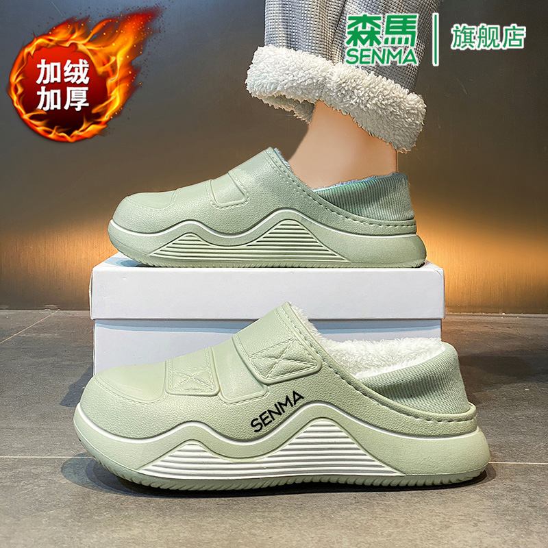 加绒加厚保暖厚底外穿情侣时尚 森马棉拖鞋 新款 2025冬季 包头拖 男款