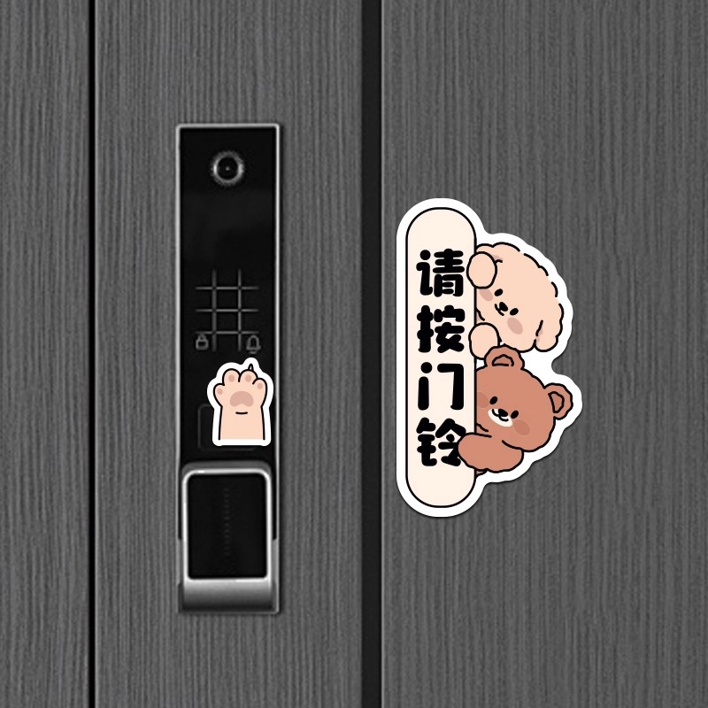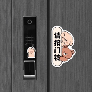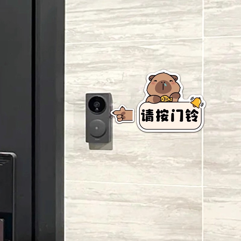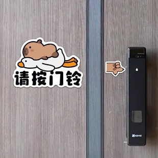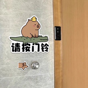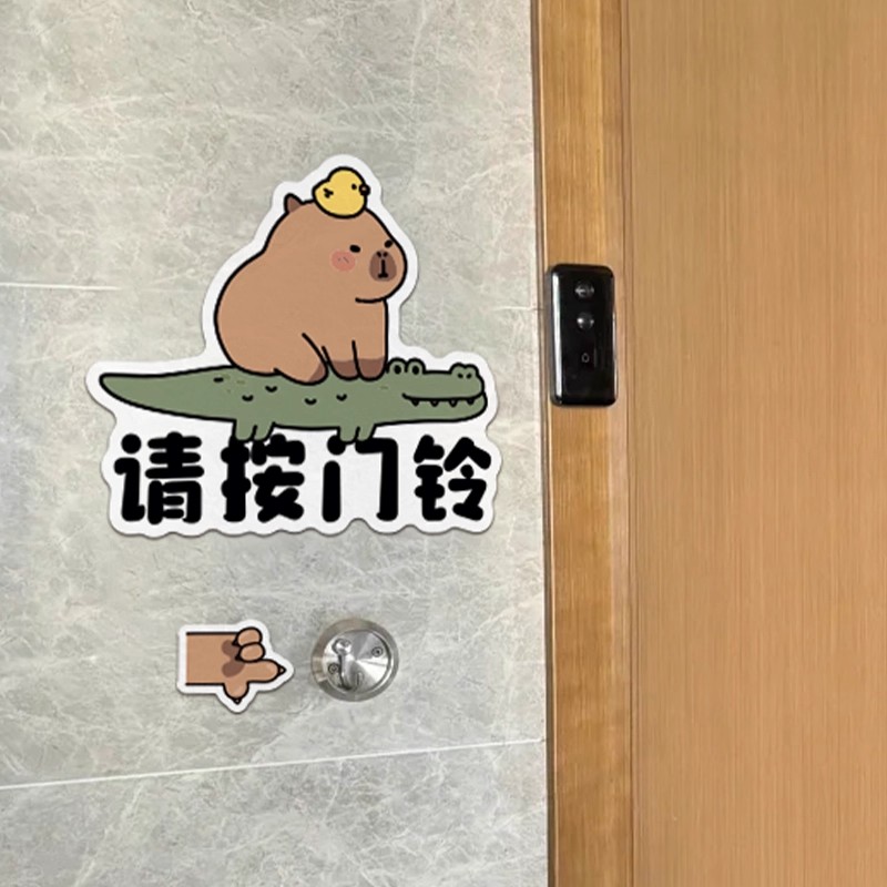 请按门铃温馨提示贴纸可爱卡皮巴拉装 饰墙贴画自粘创意卡通指示牌