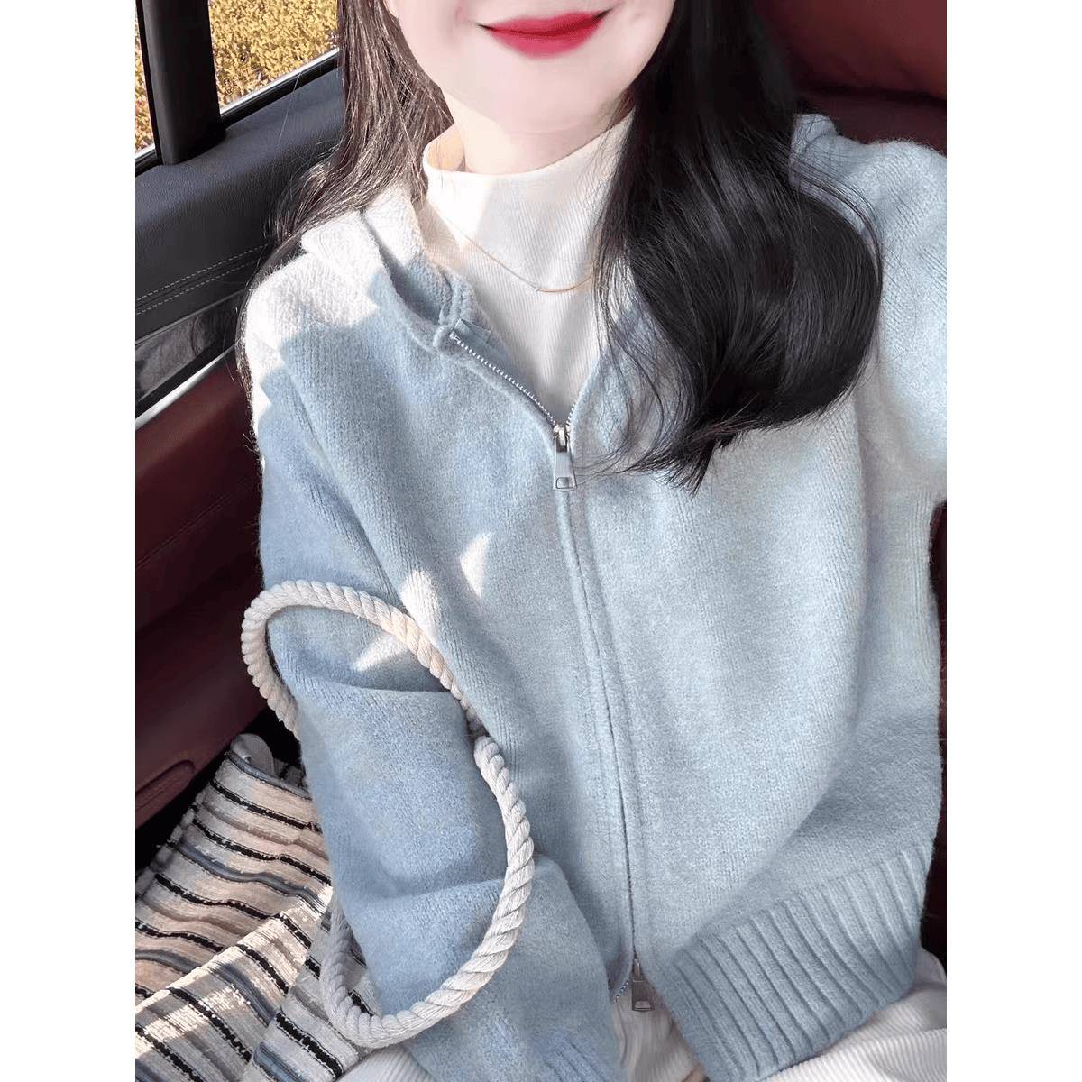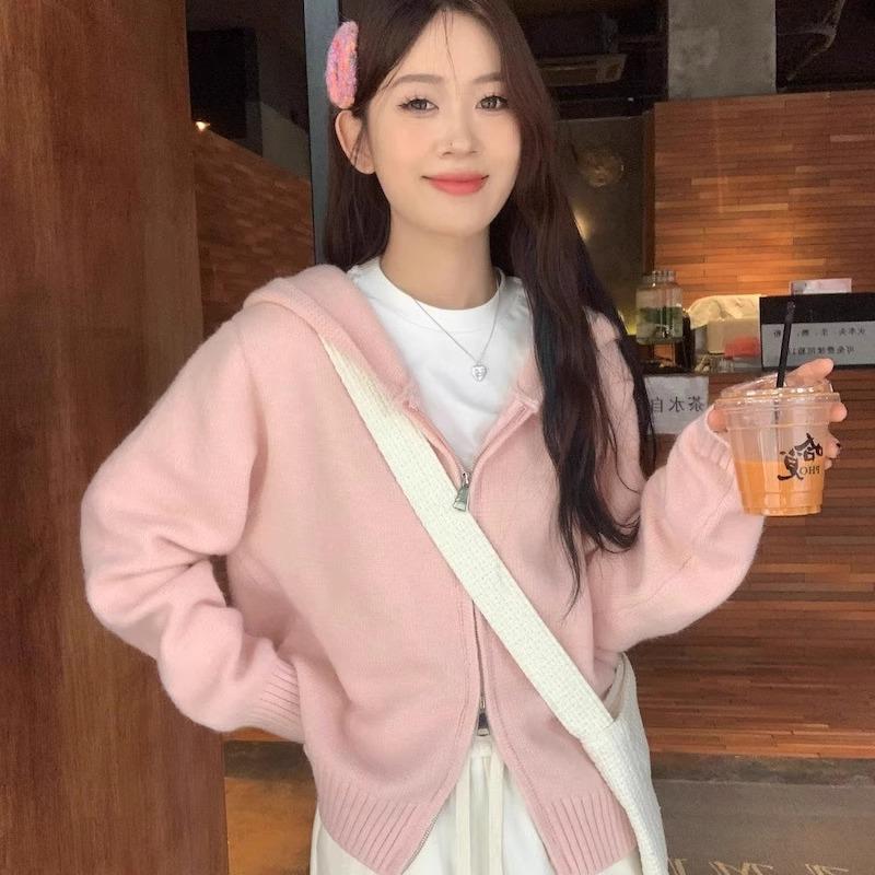 小个子韩系上衣女装 设计感收腰花边拼接开衫 秋季 三福毛衣2025新款